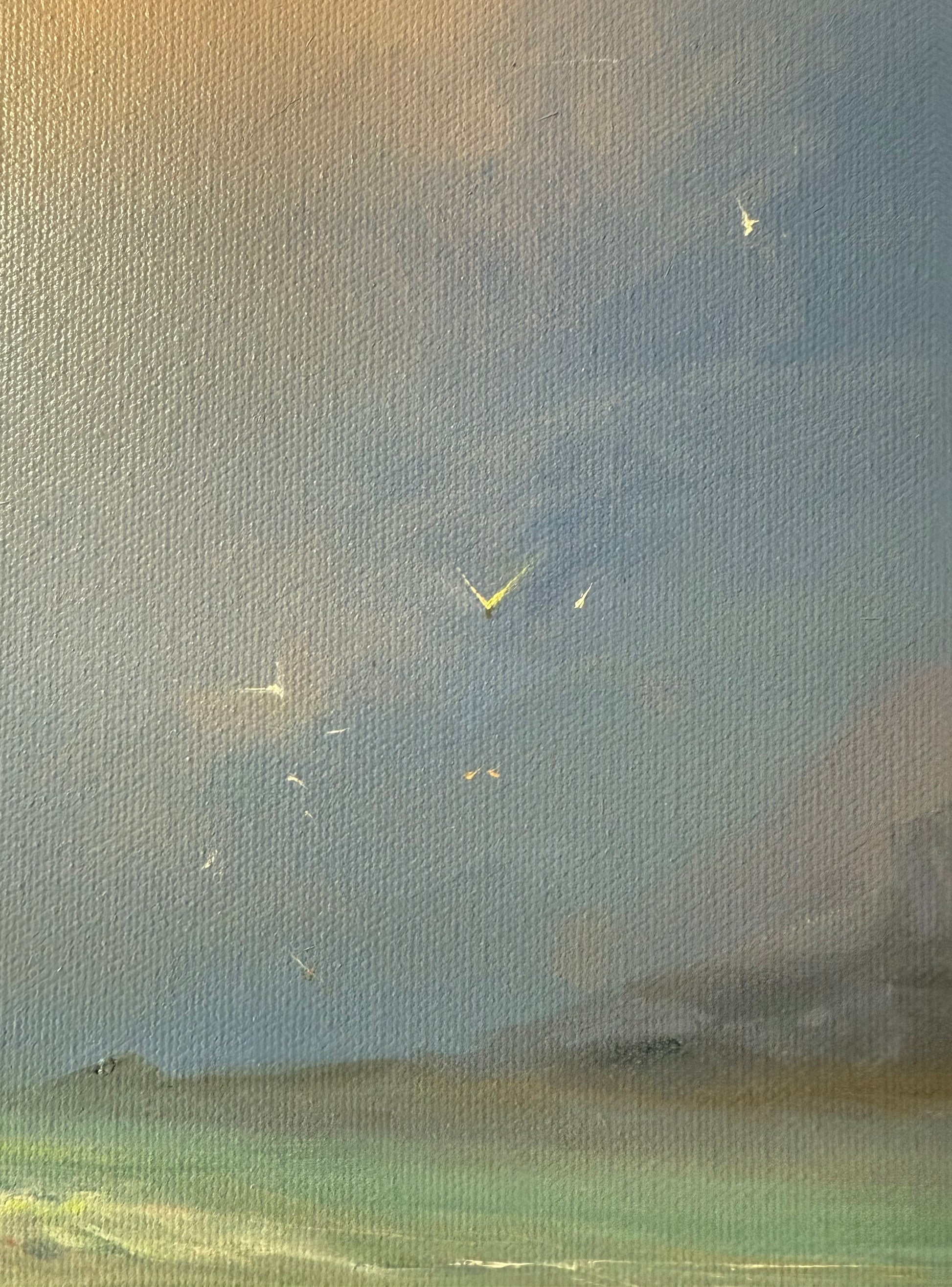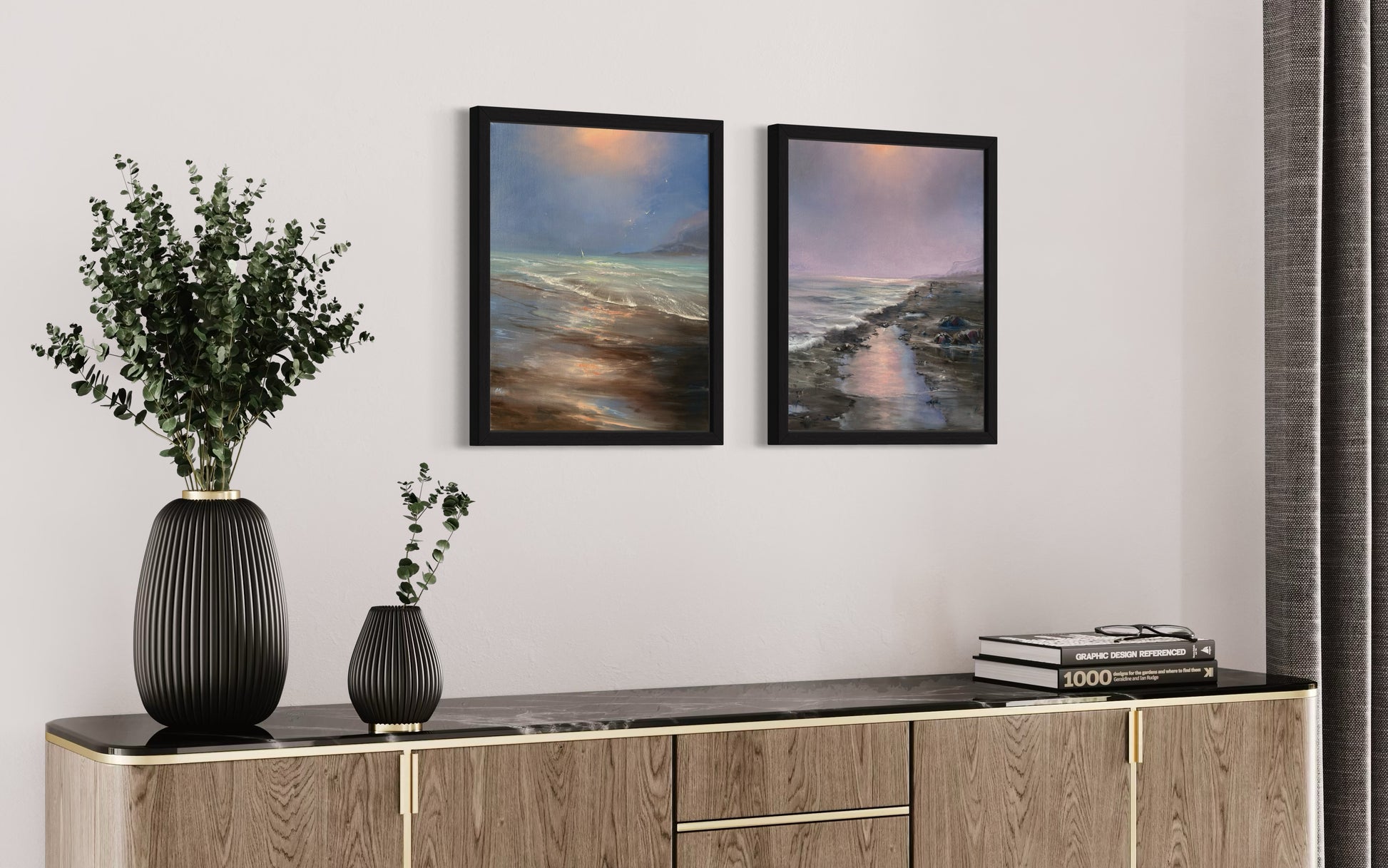In this oil painting, I've endeavour to capture the ethereal essence of a hazy beachscape. Driven by my passion for the interplay between light and shadows in atmosphere, I've melded elements of impressionism and realism to create a scene that speaks to the soul's longing for tranquillity. The subtle gradations of colour and the soft, elusive forms convey a moment of peaceful solitude and quiet happiness . This artwork aims to infuse your space with a tranquil, serene and reflective mood.