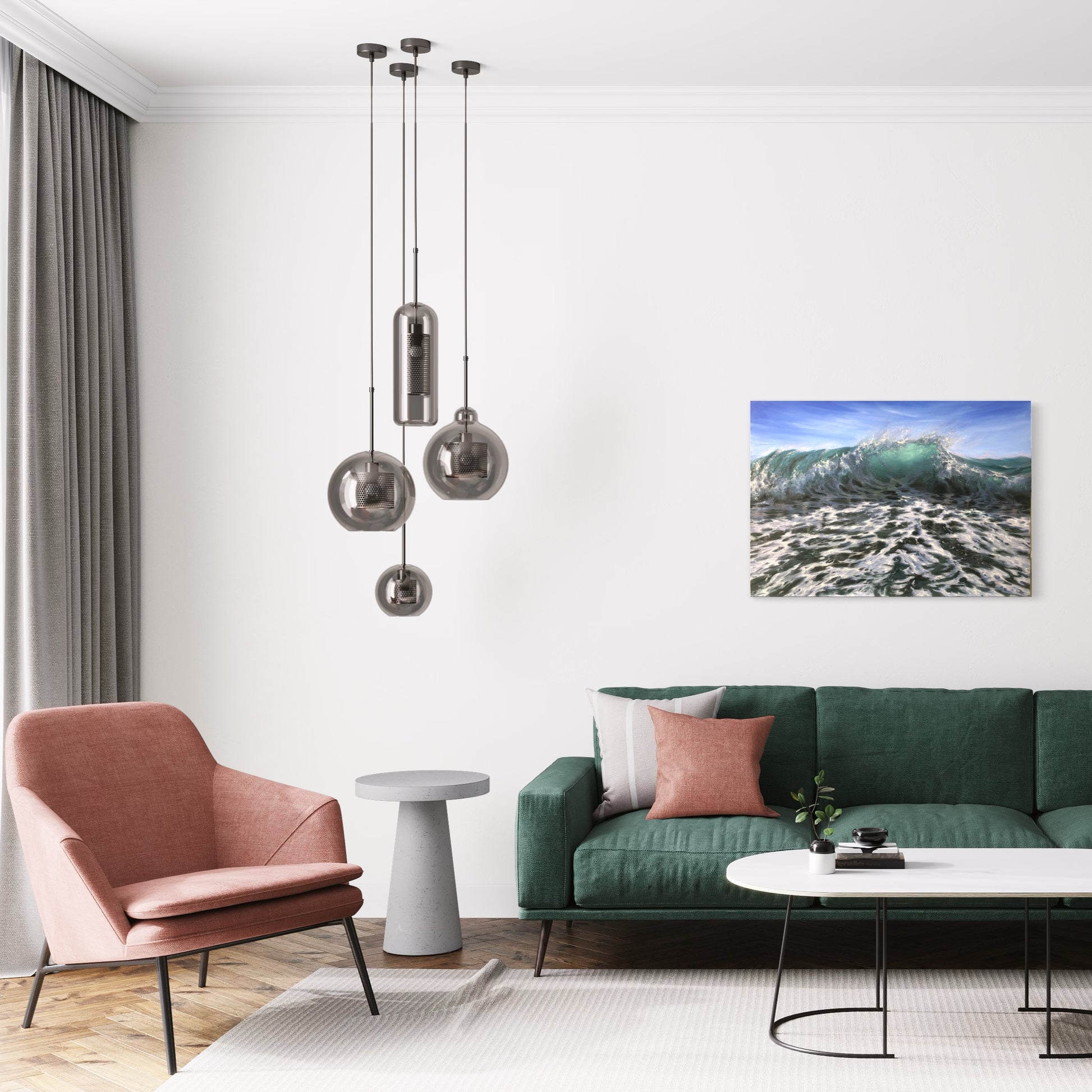 In this dynamic oil painting, I've endeavoured to capture the raw power and perpetual motion of the sea. The inspiration for this original work of art came from the warm, sunny summer afternoons on the coast and the daring beauty of the ocean. The combination of the deep blues, luminous greens and frothy whites conveys the ocean's relentless spirit. It's a celebration of nature's majesty, designed to bring the essence of life into your living space, energising it with the ocean's timeless motion.