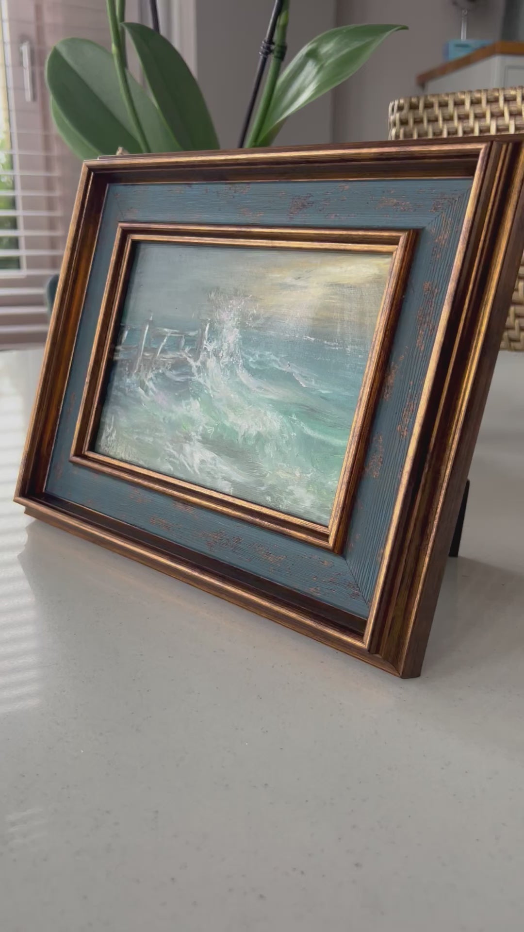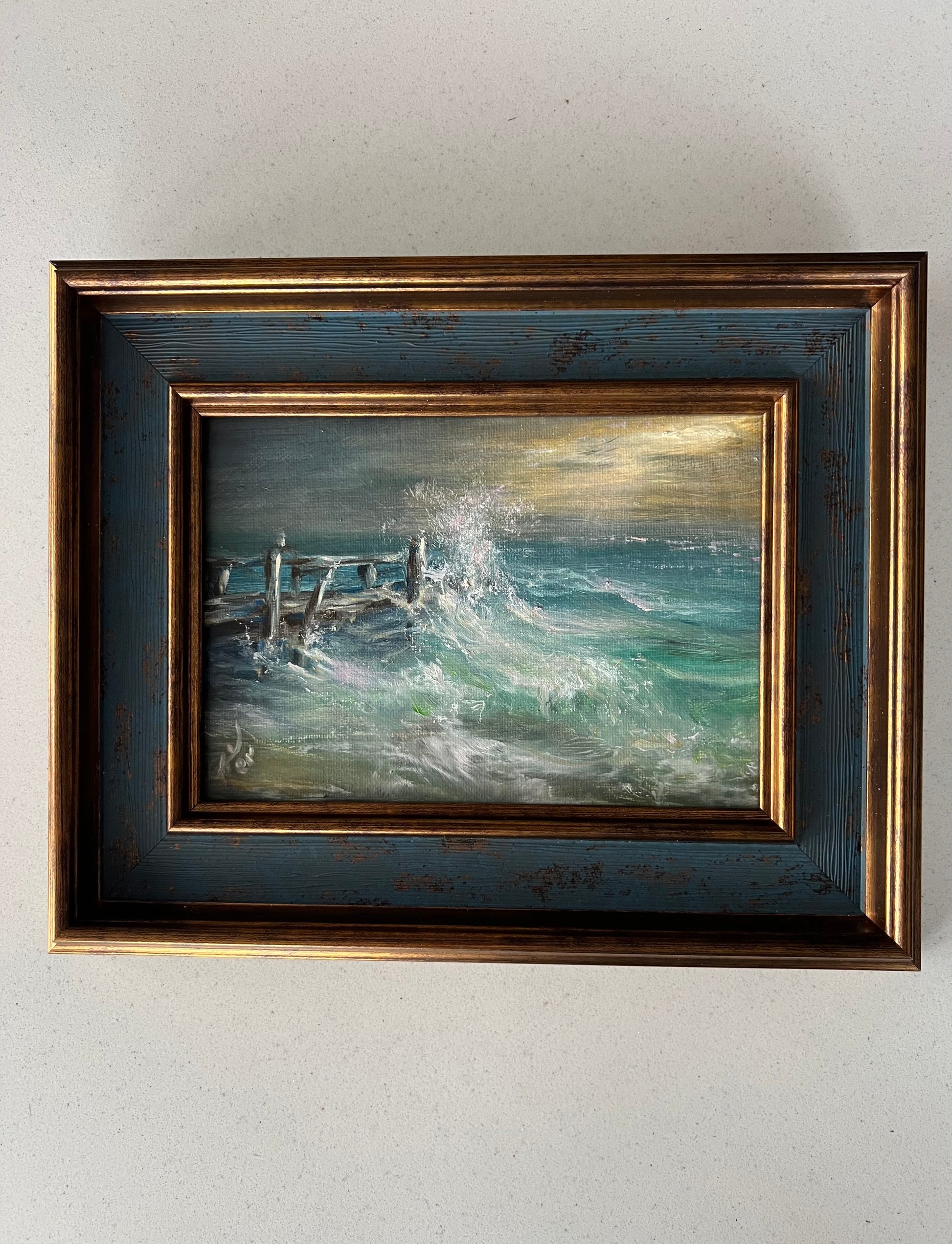 Small Framed Original A5 Canvas on board Oil Painting, seascape.