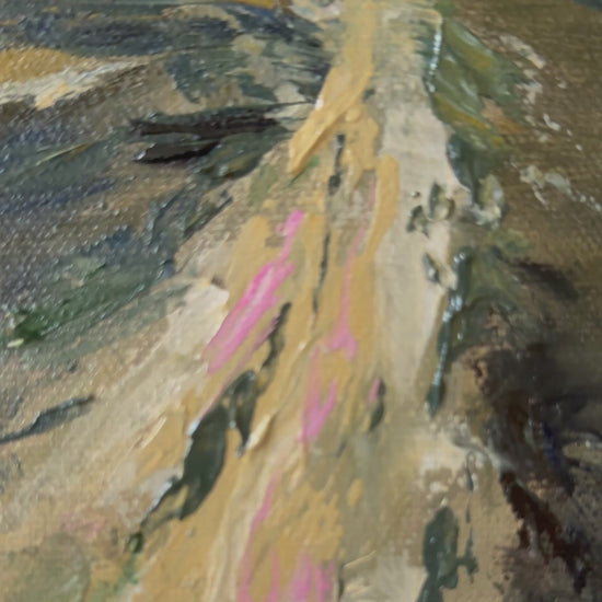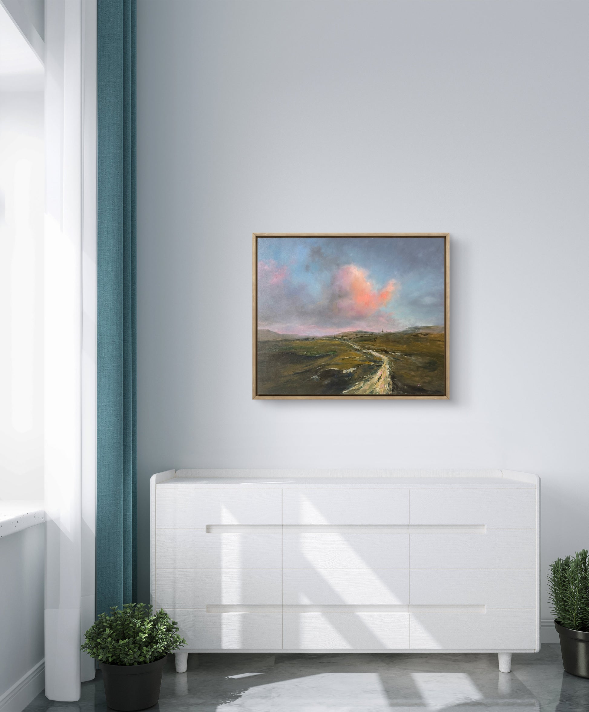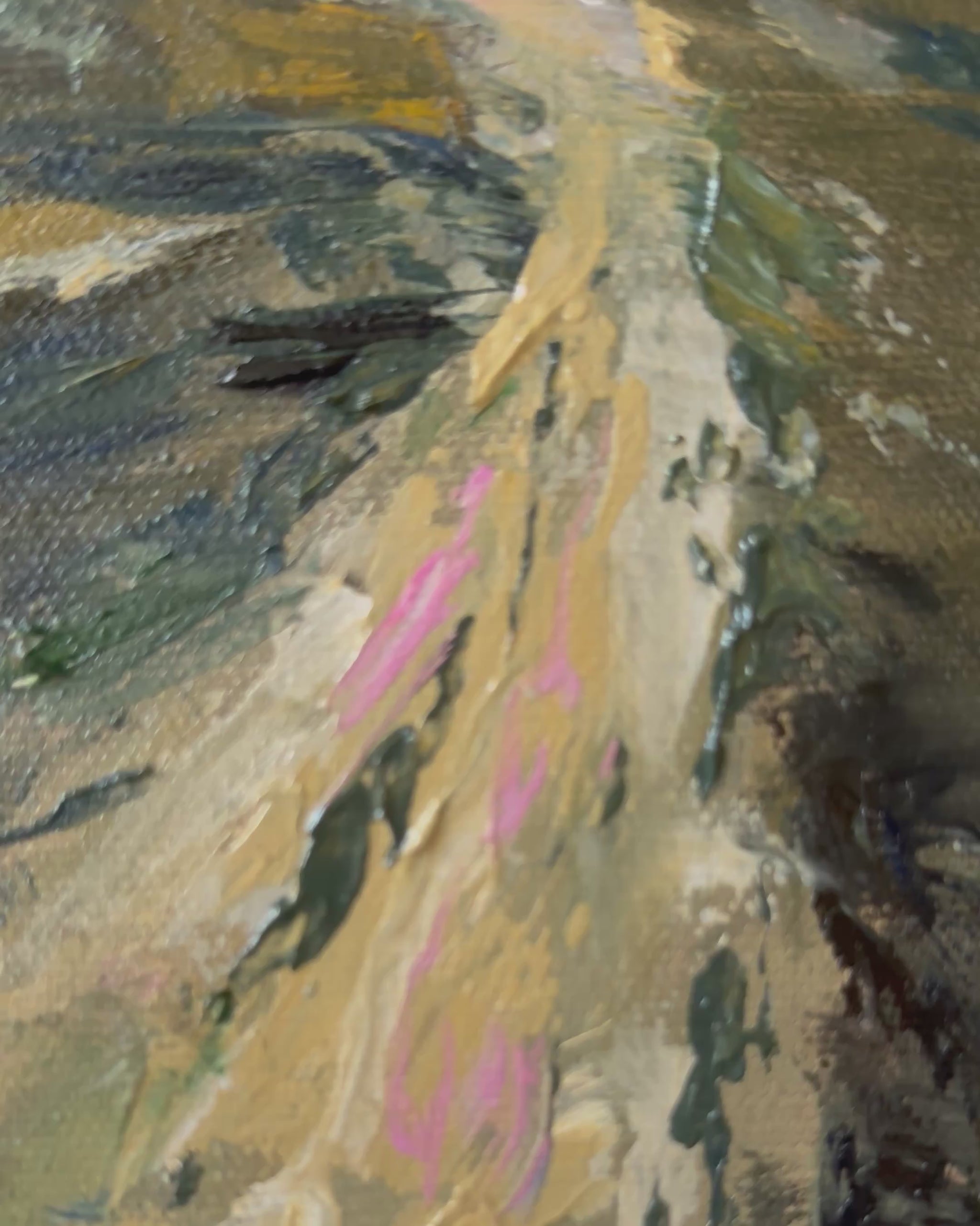 This oil painting captures the quiet beauty of an endless path under a vast sky. The soft pink clouds evoke hope, while the earthy tones ground you in reality. This piece breathes tranquillity and invites you to reflect on your own journey, filling your space with calm and inspiration.