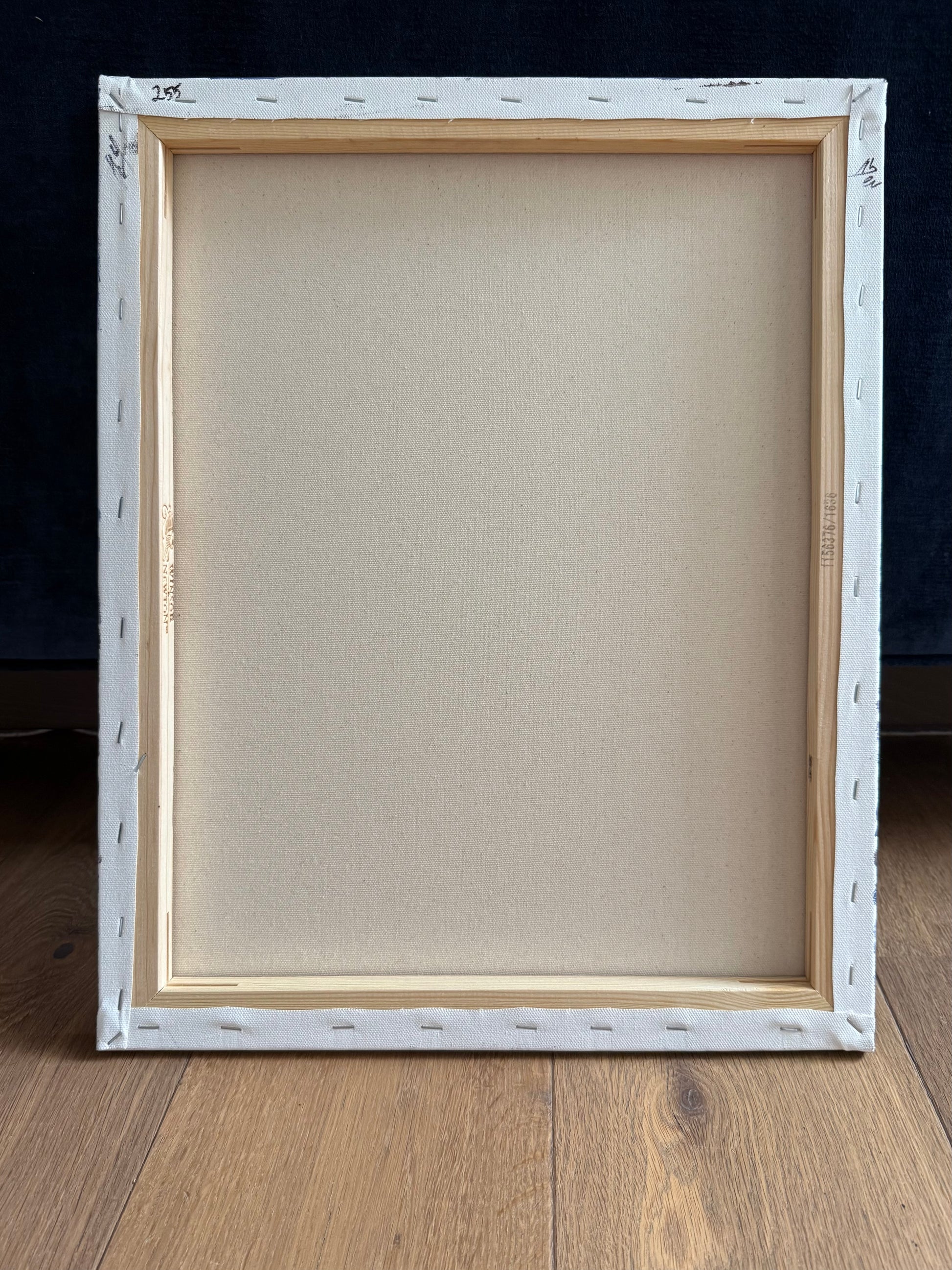professional grade oil paints, brushes, palette knife, deep edge gallery wrapped 100% cotton canvas, varnish.