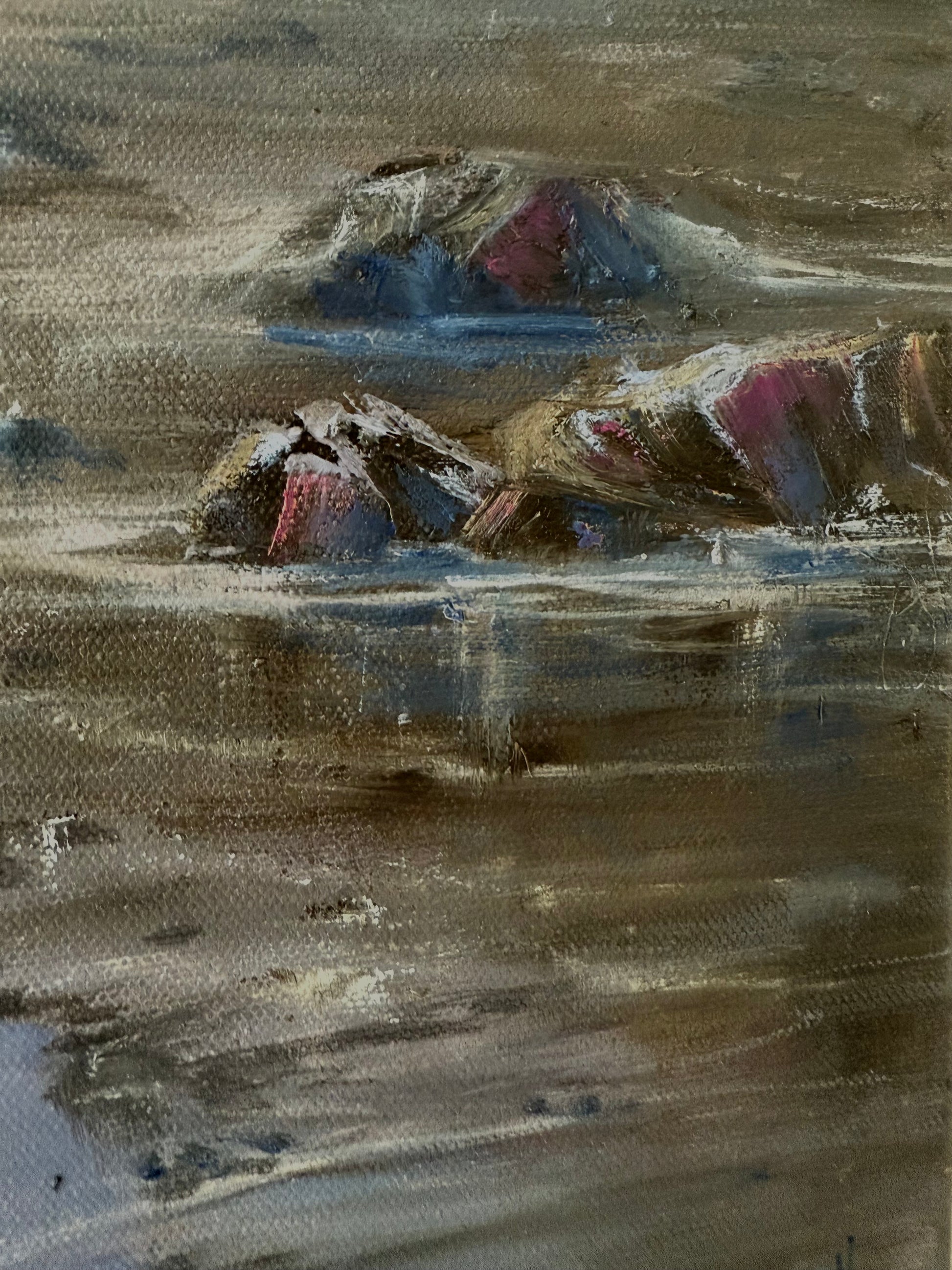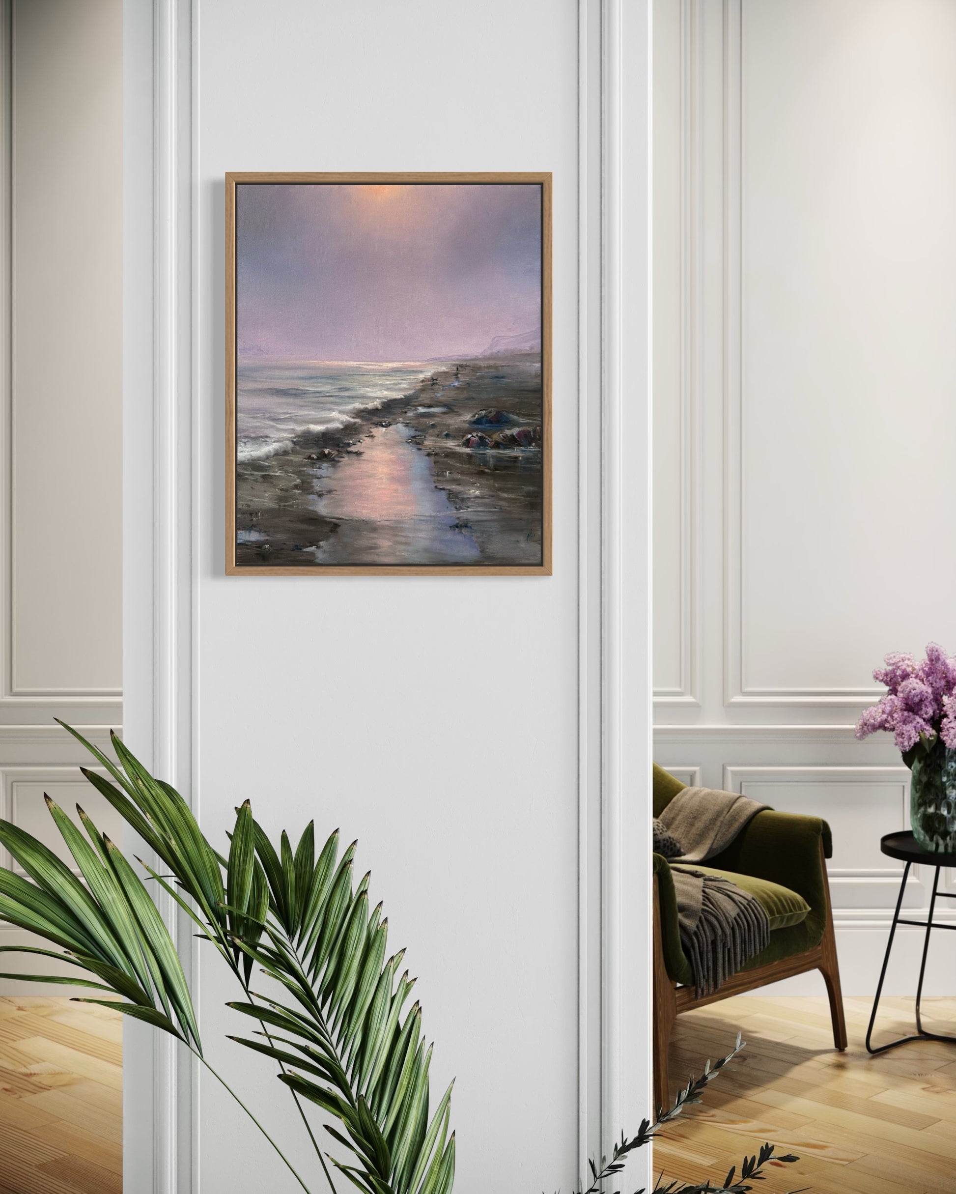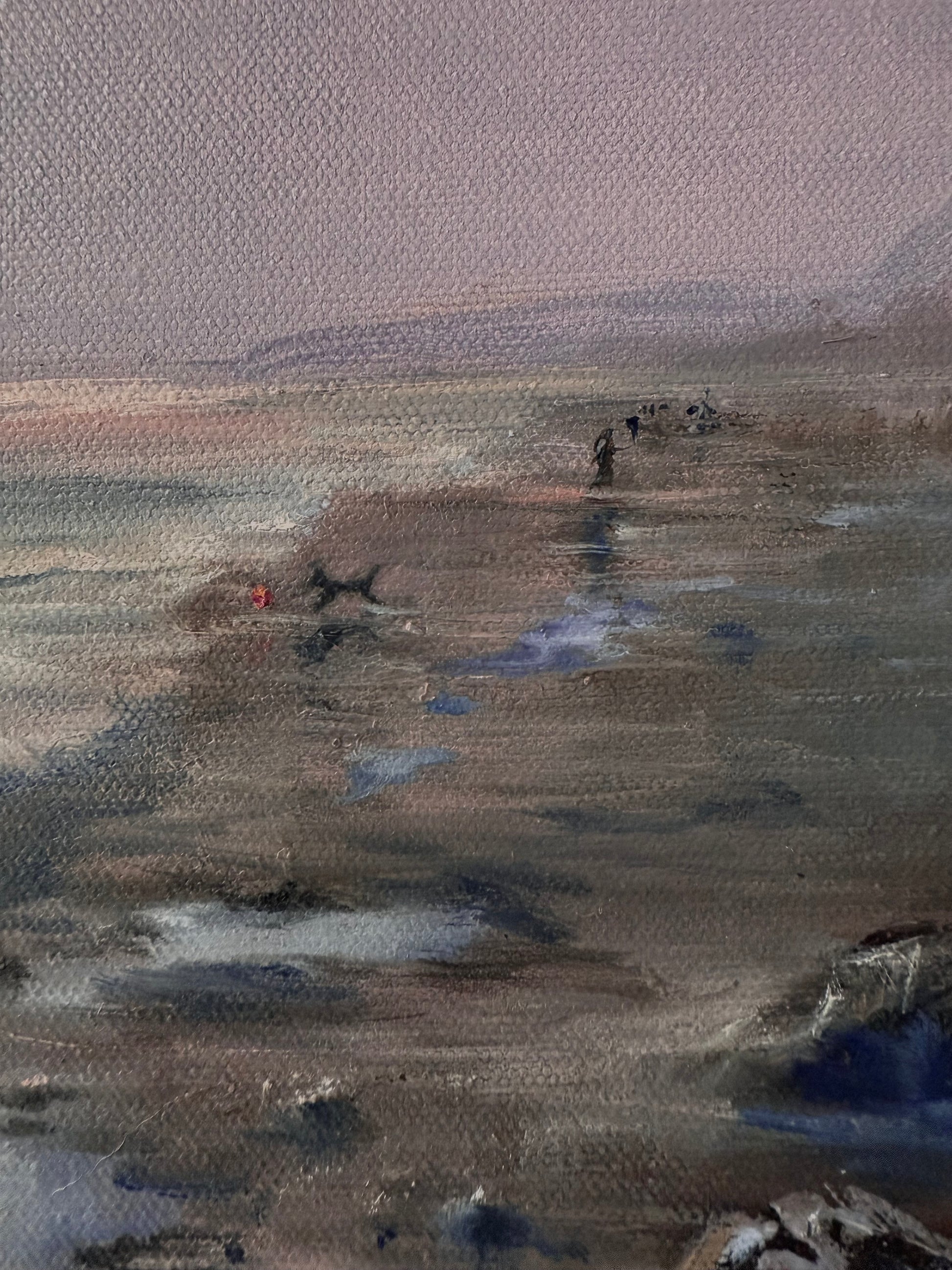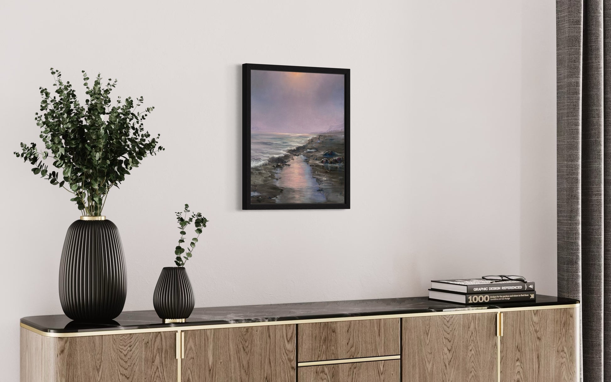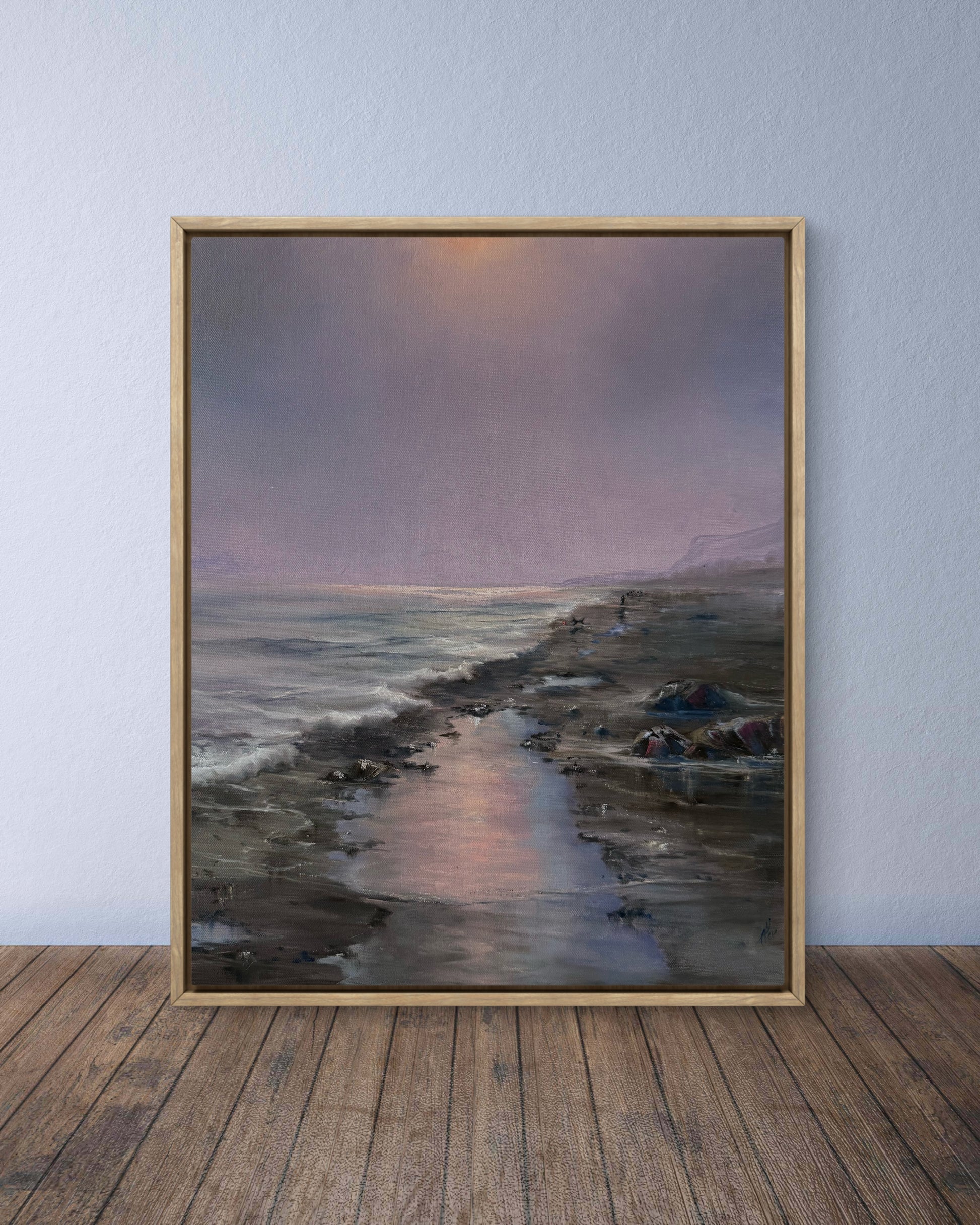 In this oil painting, I've endeavour to capture the ethereal essence of a hazy beachscape. Driven by my passion for the interplay between light and shadows in atmosphere, I've melded elements of impressionism and realism to create a scene that speaks to the soul's longing for tranquillity. The subtle gradations of colour and the soft, elusive forms convey a moment of peaceful solitude and quiet happiness . This artwork aims to infuse your space with a tranquil, serene and reflective mood.
