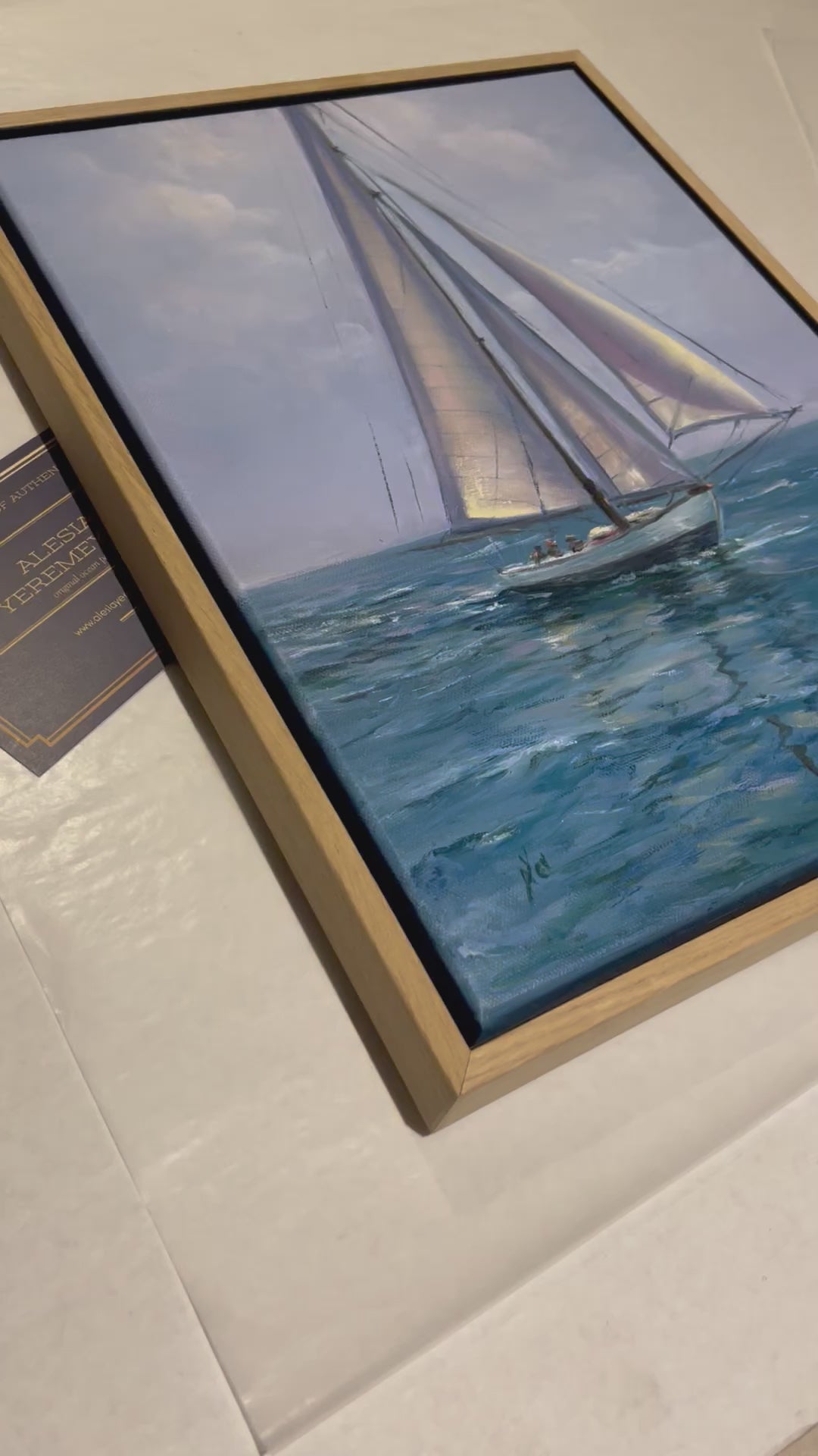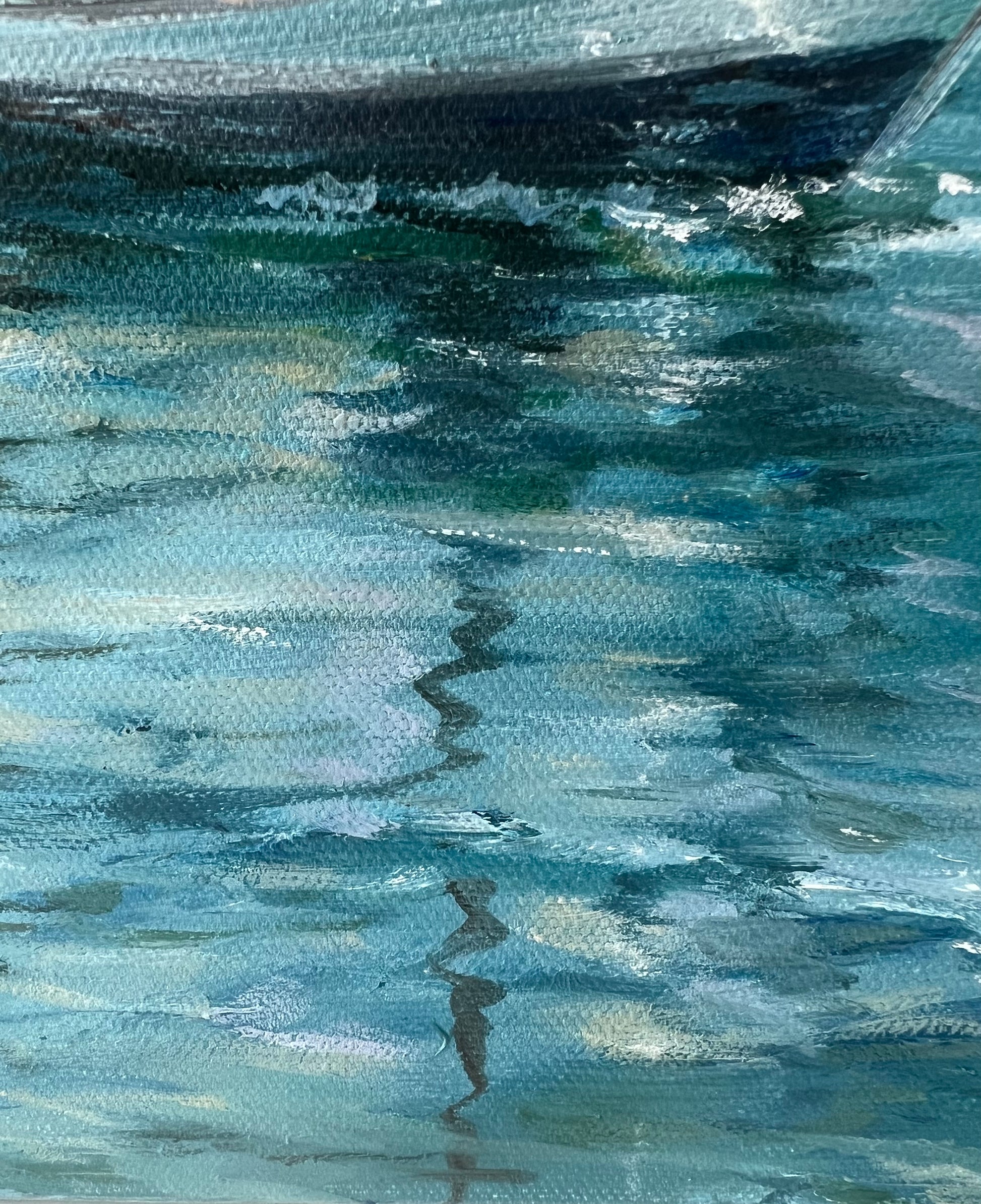 This artwork is inspired by fresh yet amazingly warm and peaceful summer days in the open sea, by the bold beauty of the ocean and freedom you feel when sailing