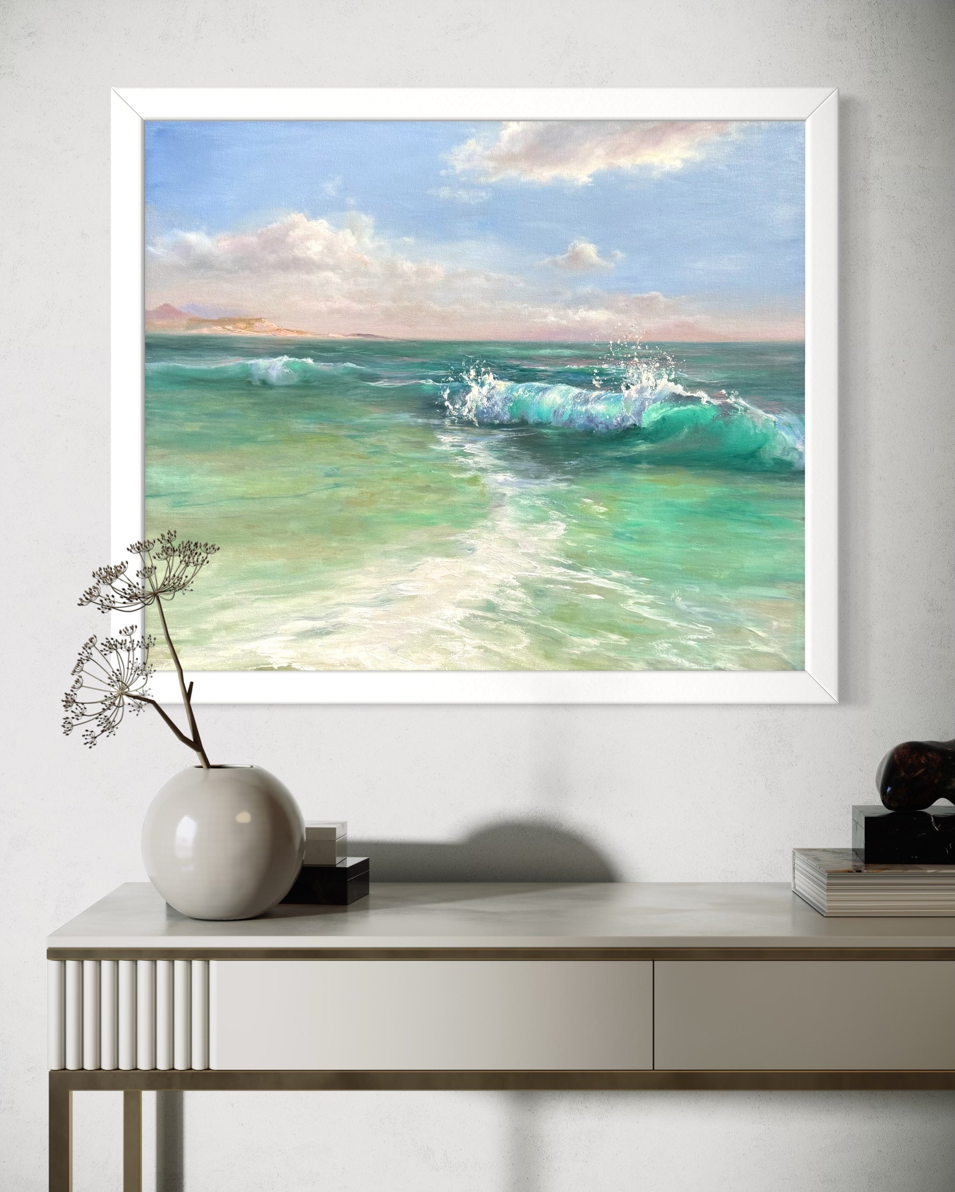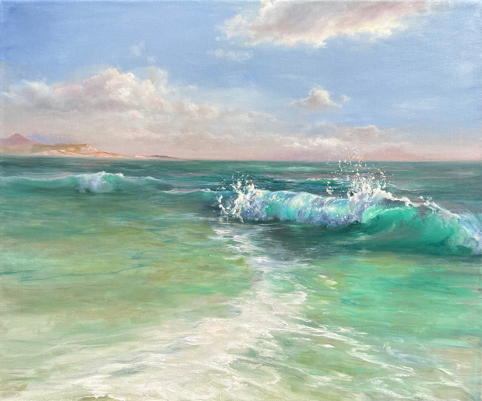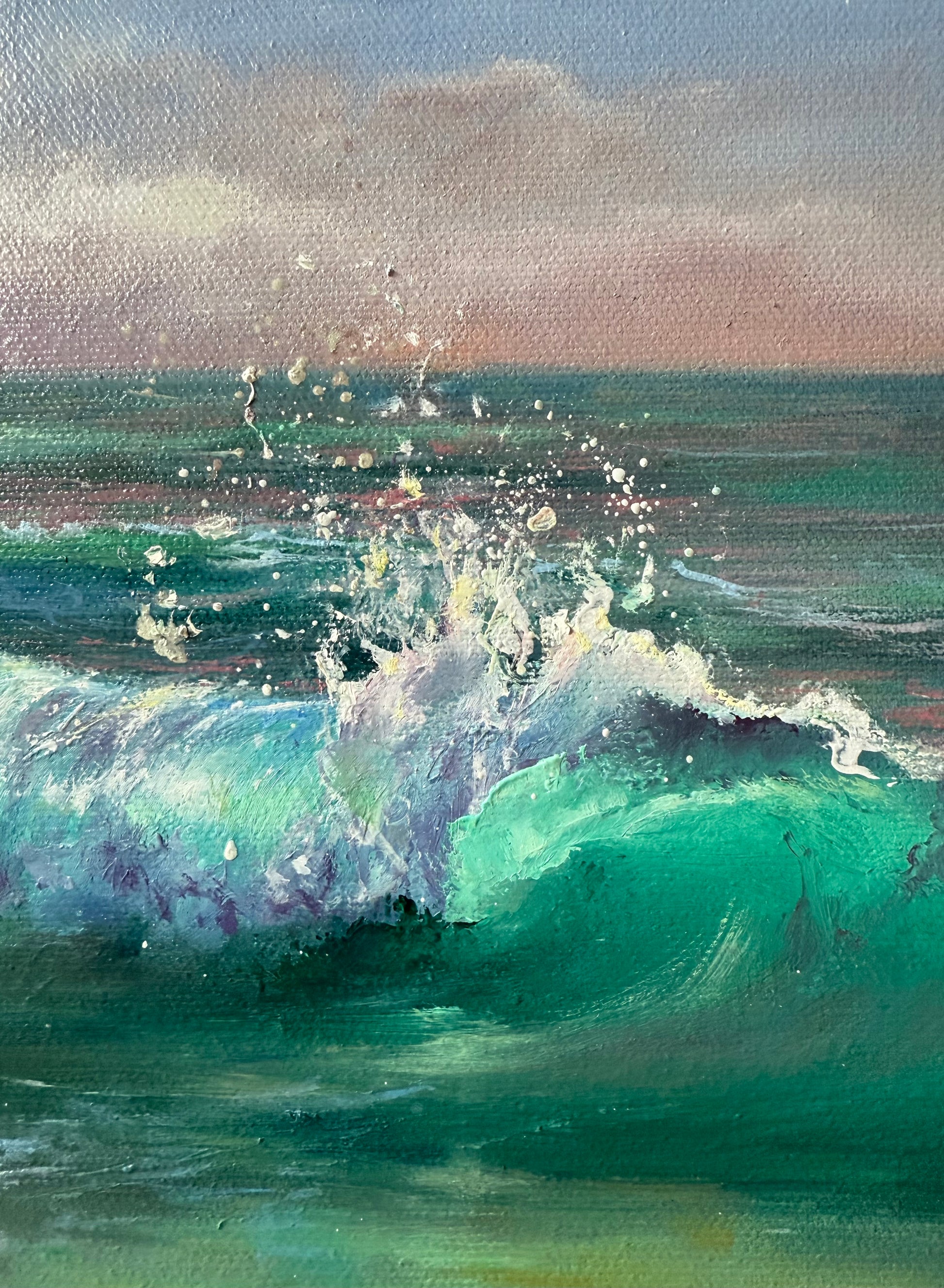 This artwork is inspired by the power and beauty of the stormy ocean, overwhelming might of its crushing waves, fascinating translucency of the seawater.