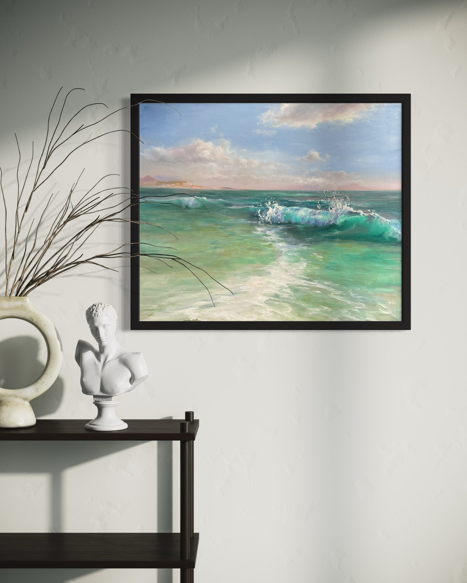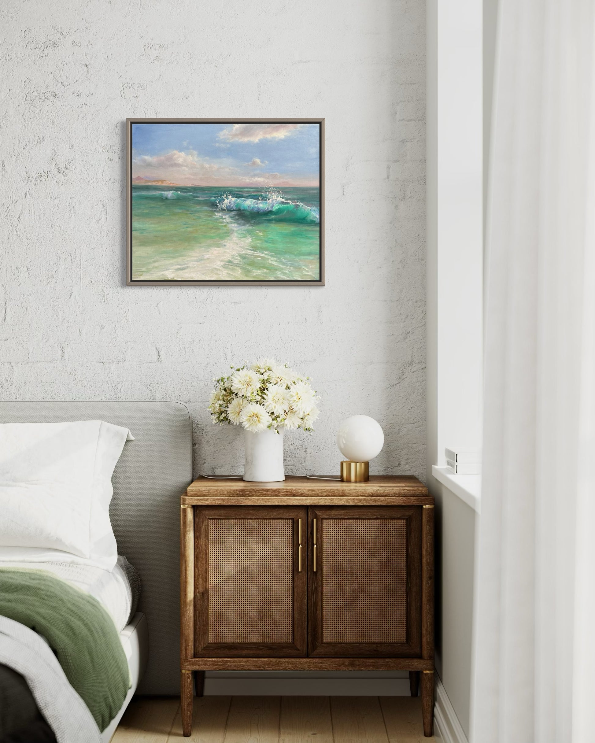 This painting would look great in any home décor style. It is ready to hang, can be framed or hung without a frame - this painting is extended over the edges of the gallery wrapped deep canvas, is wired, signed and dated by me.