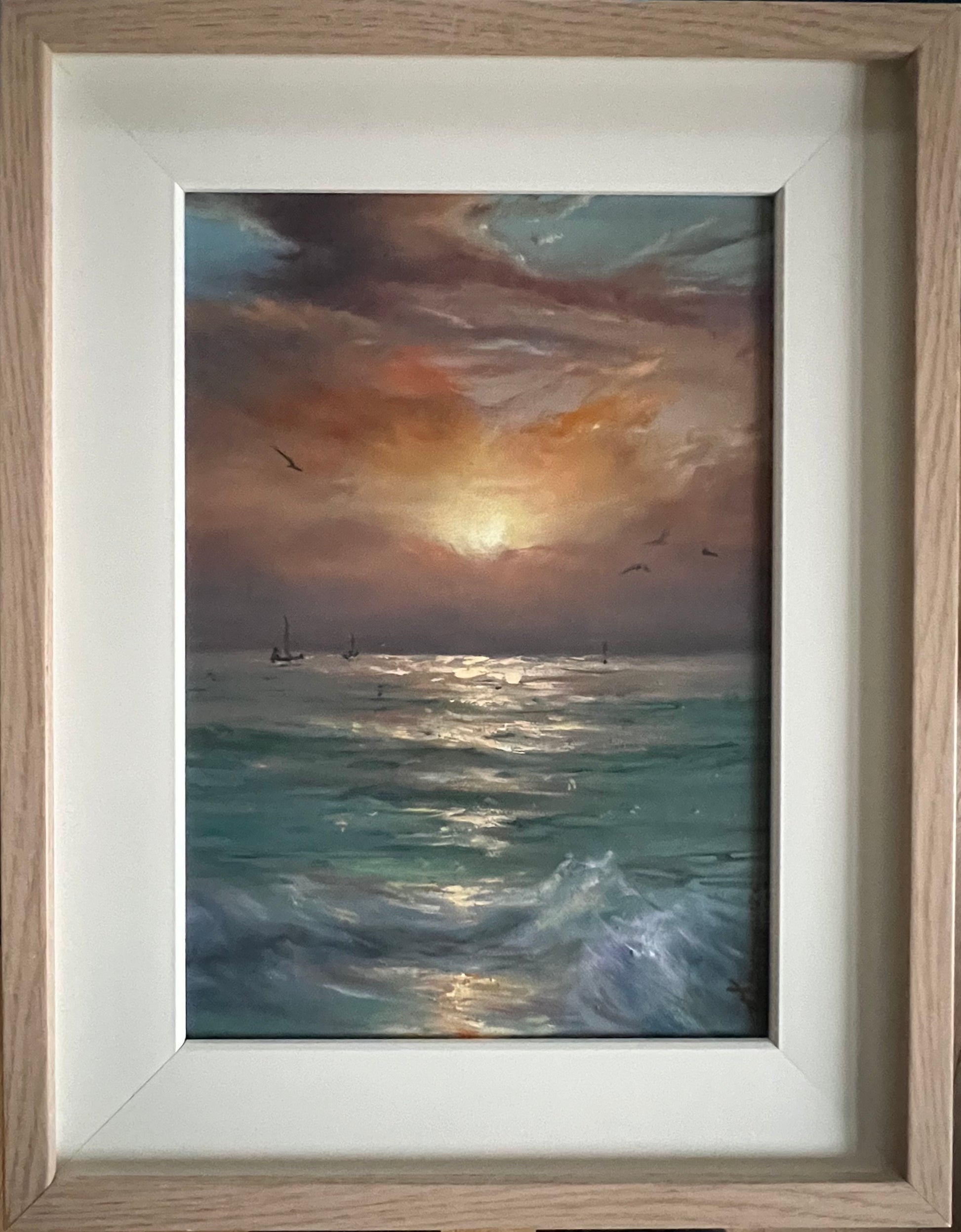 Small Original Canvas on board Oil Painting, seascape.