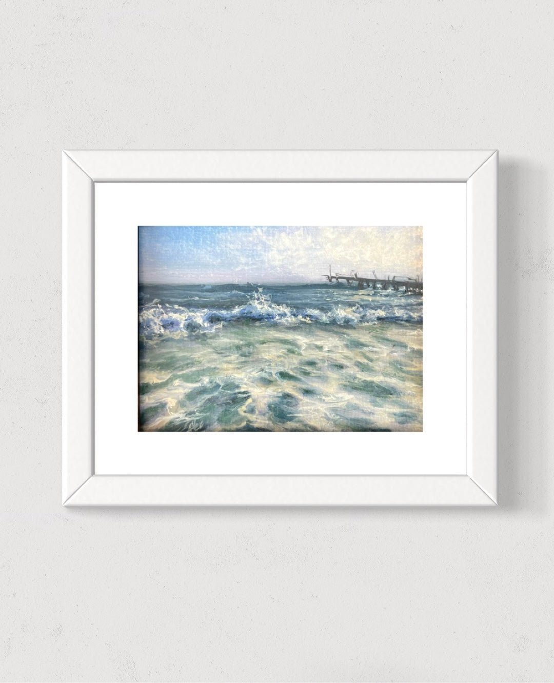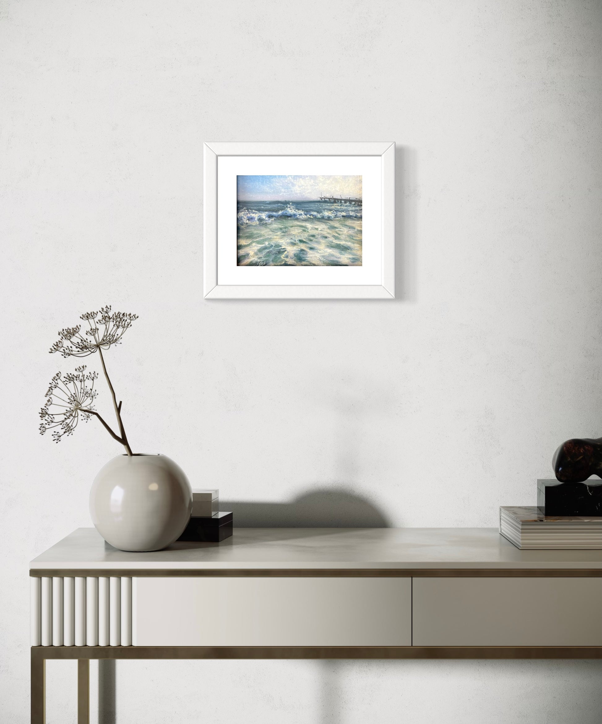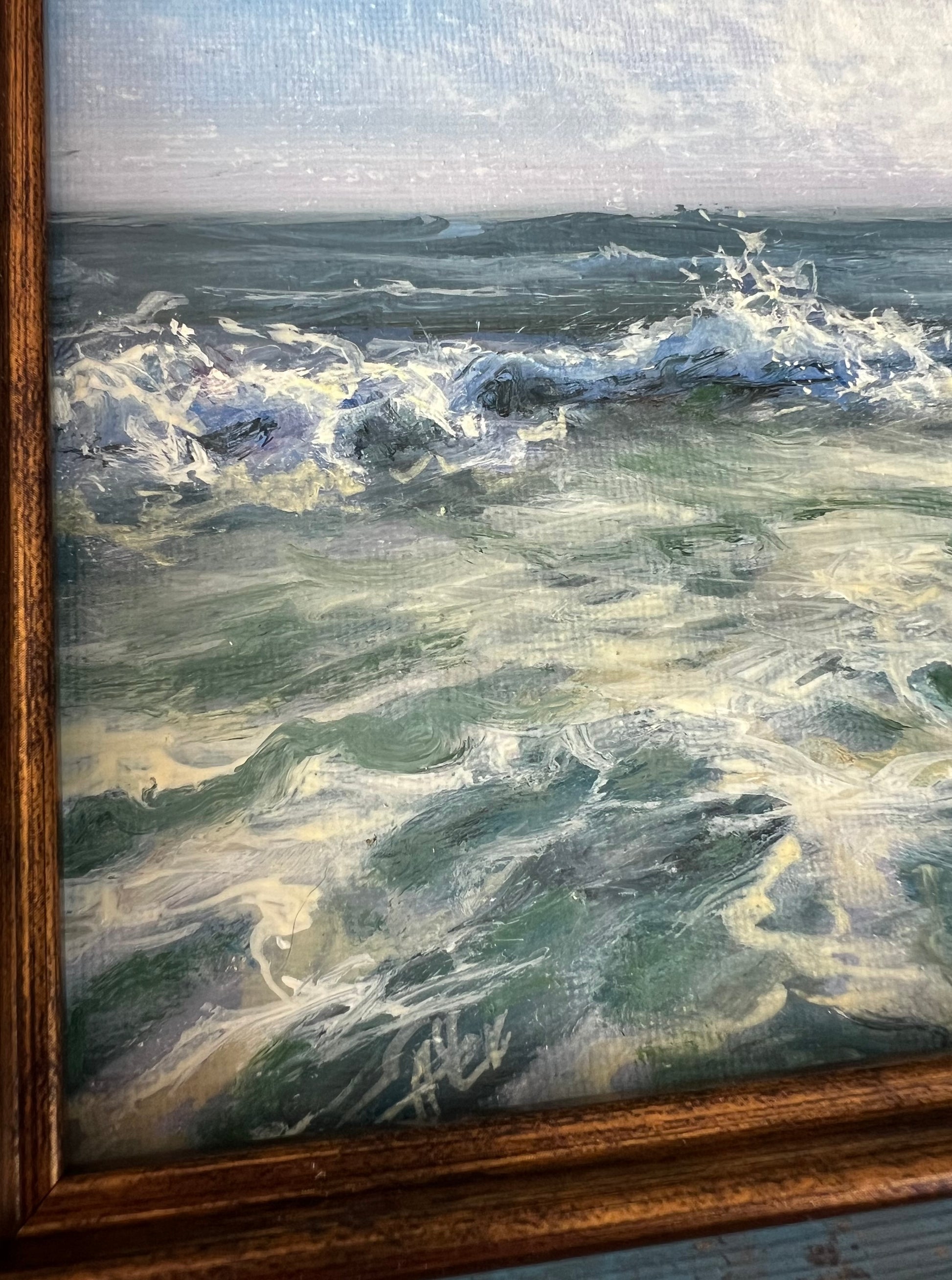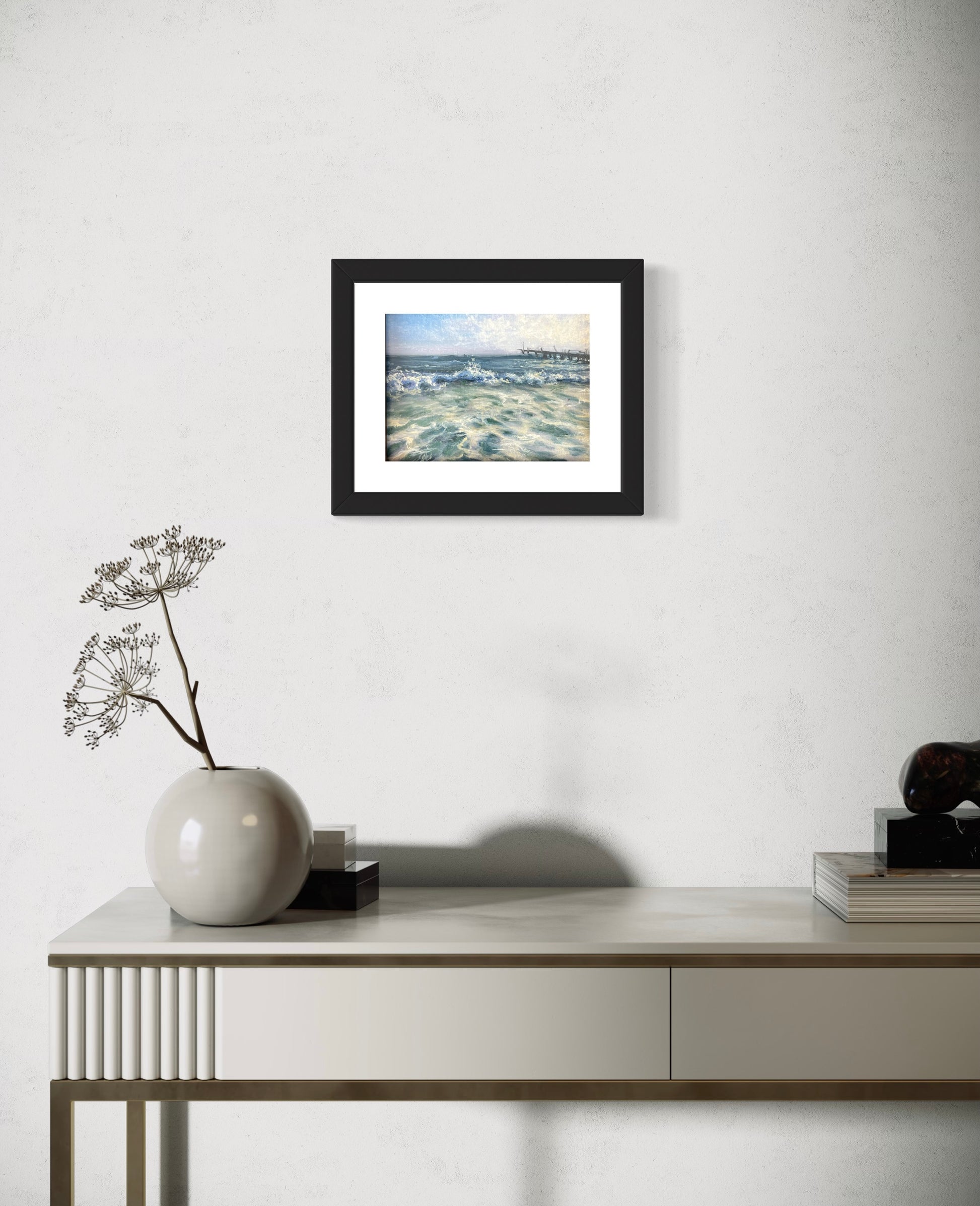 -Black wood: this original ocean painting is framed with high quality hand-made wooden frame and soft white mount , placed under low-reflective ClearView™ PlexiGlas (compare to normal glass), is signed and dated by me at the back.