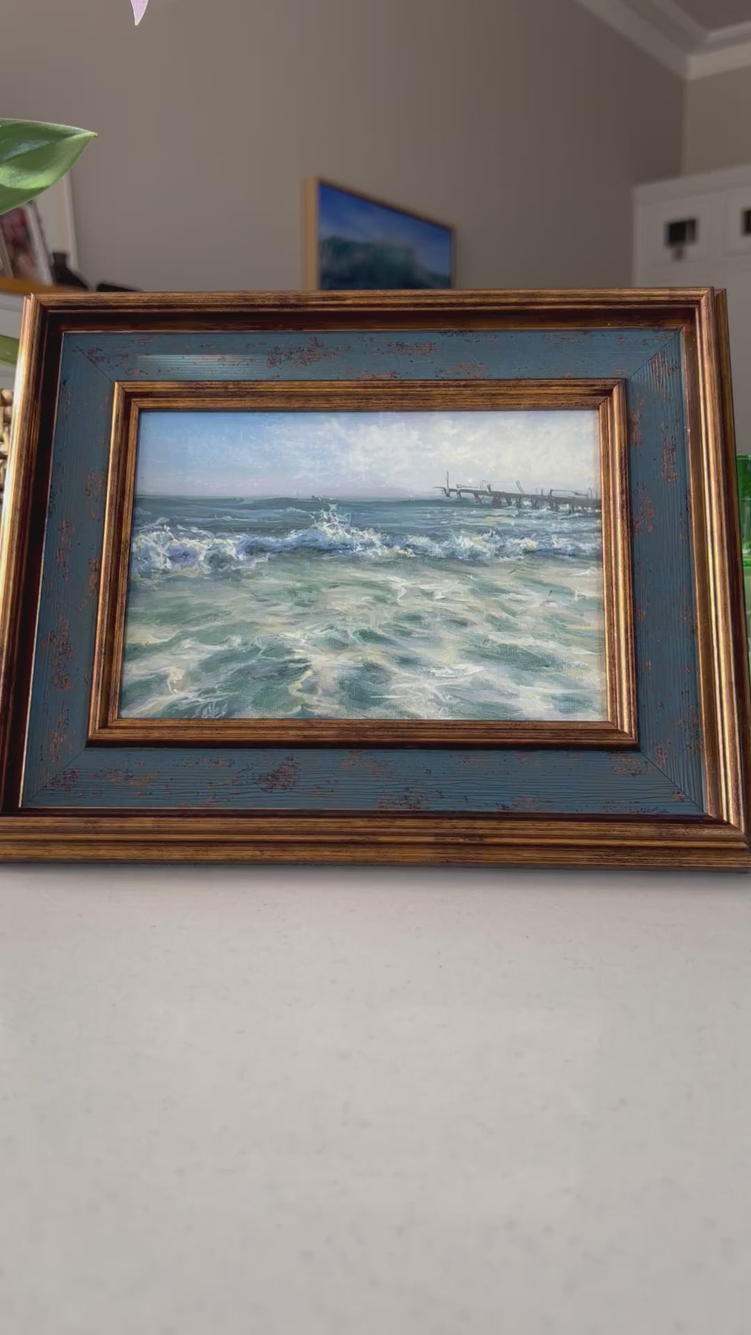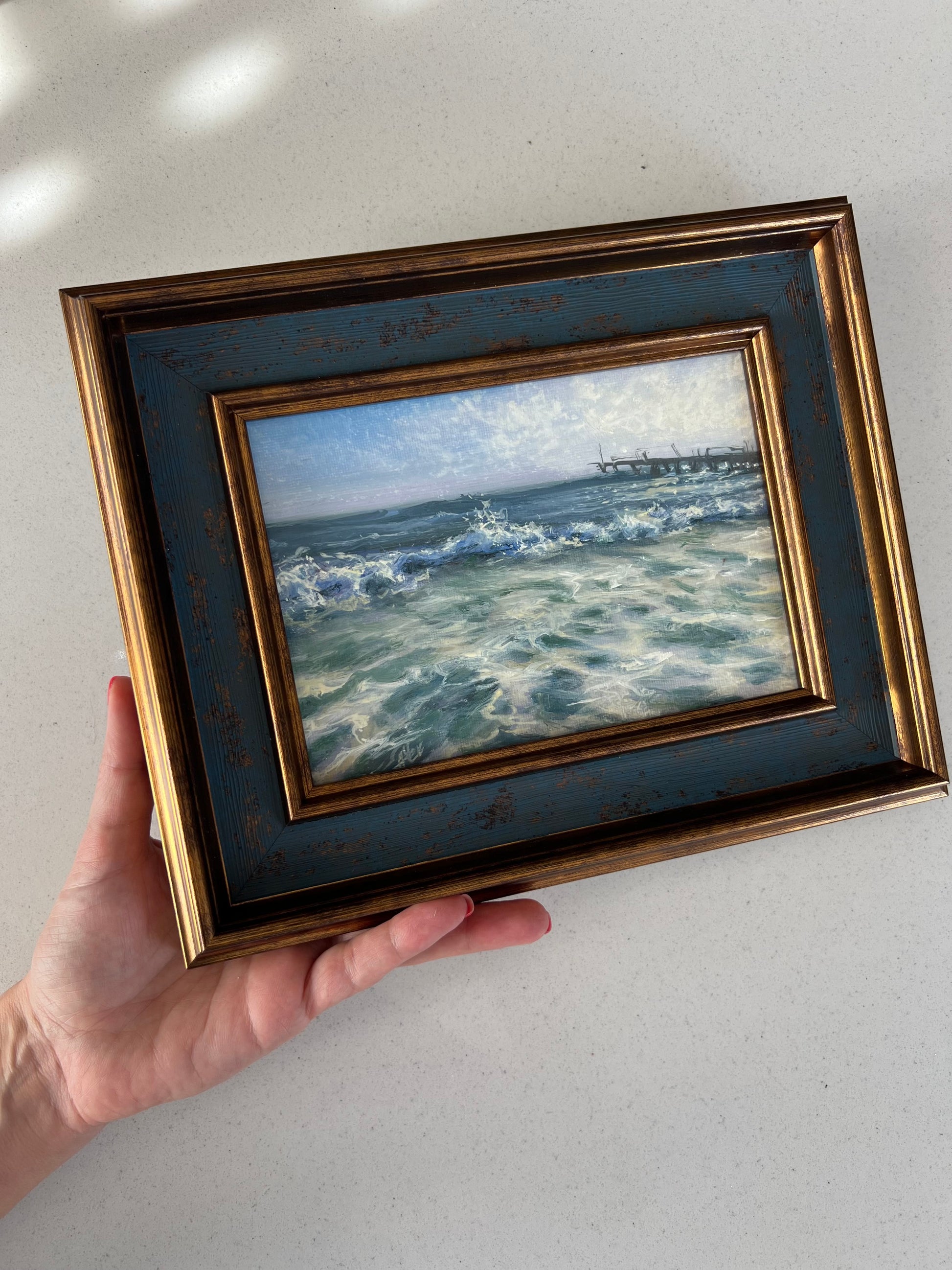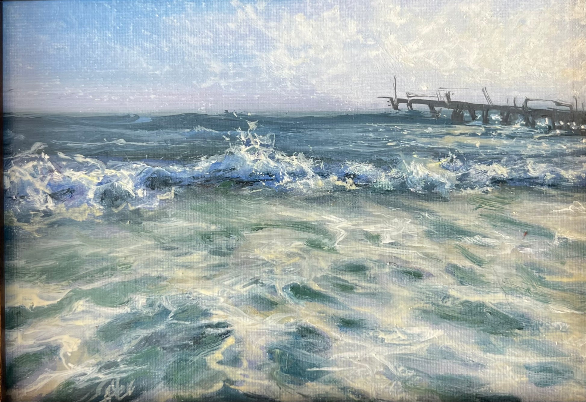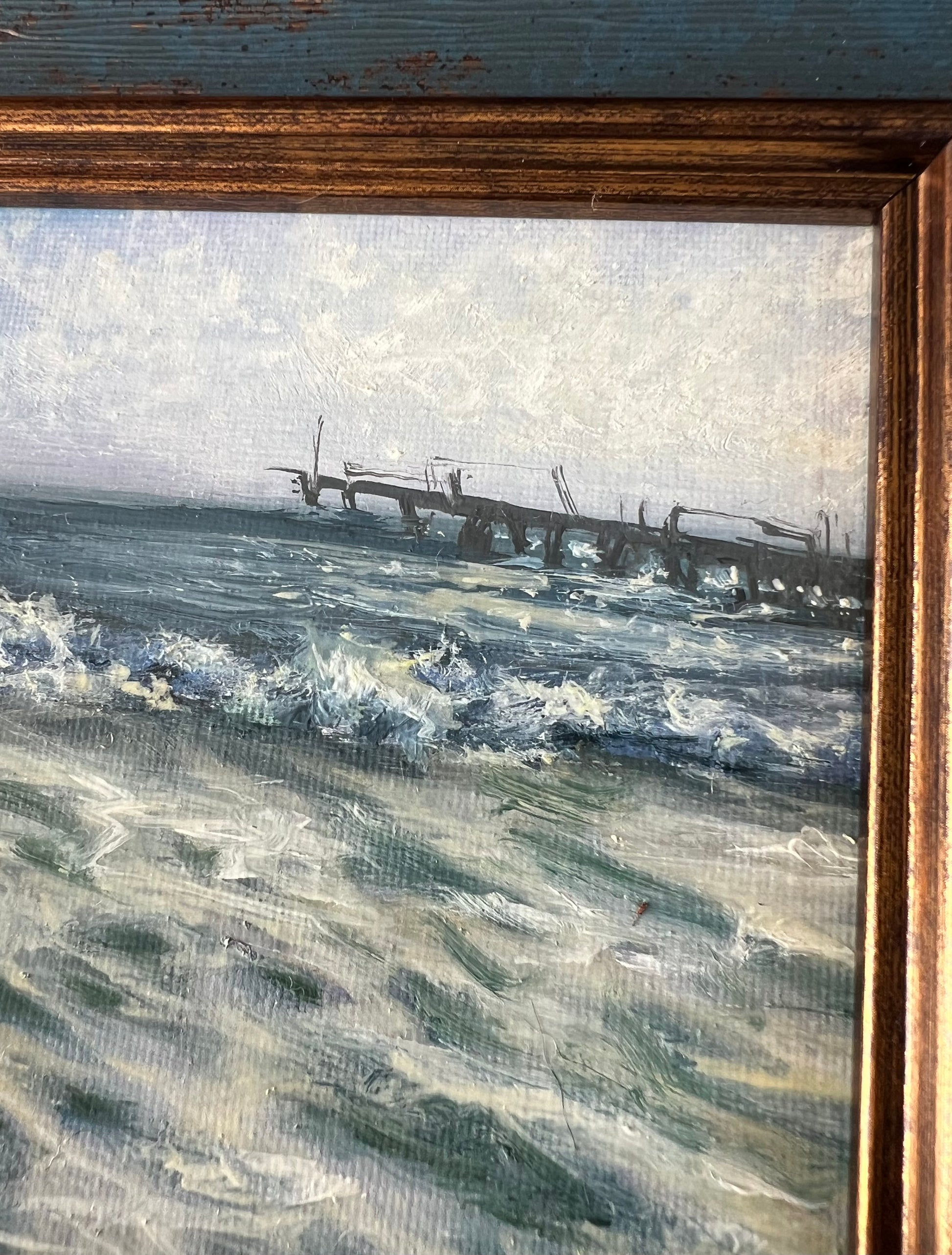 By the Old Pier II, 13x18cm, original seascape oil painting