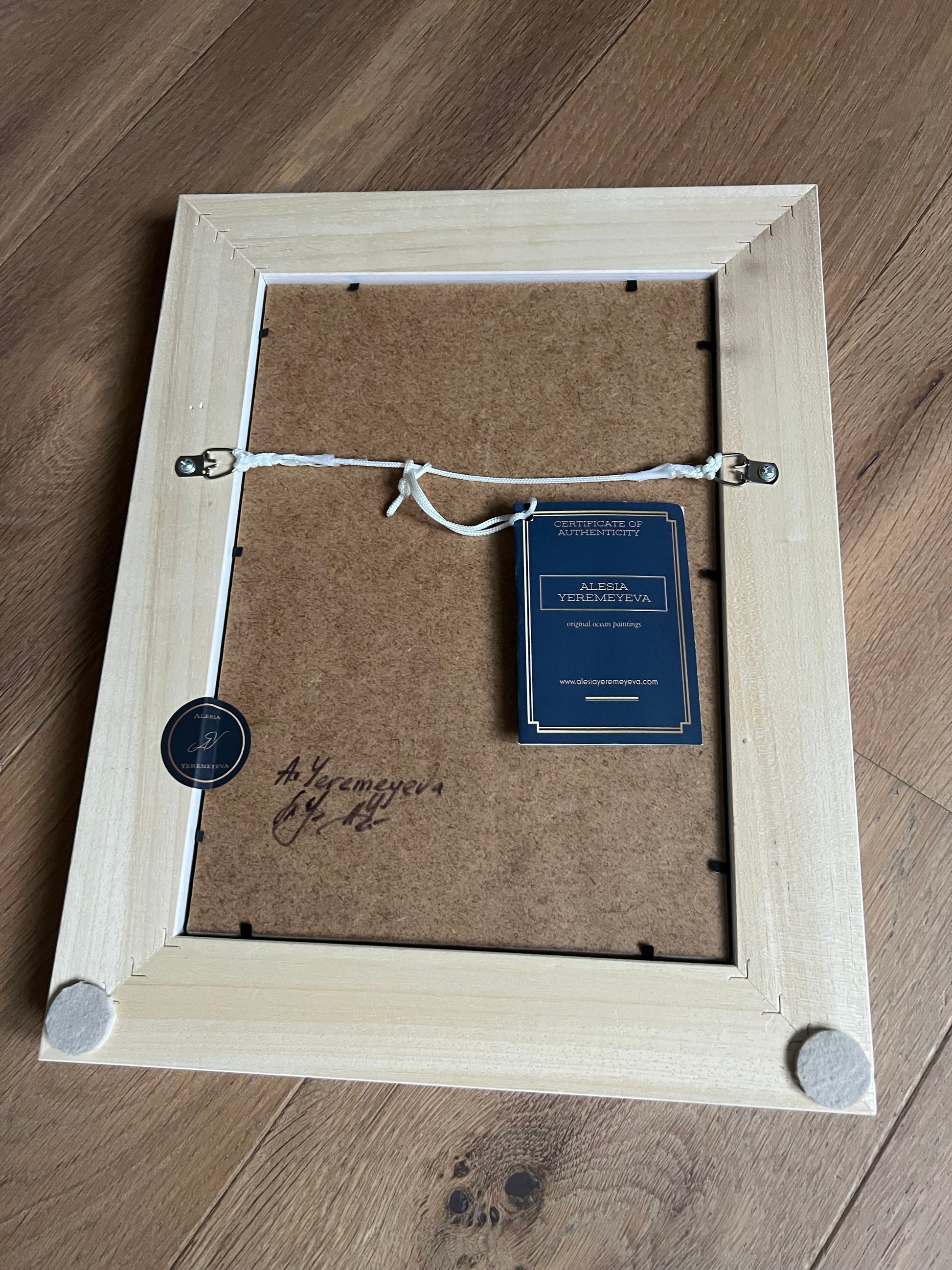 - White wooden frame with the soft mount, 43x33x2.5 cm (17x13 inch), ready to hang.