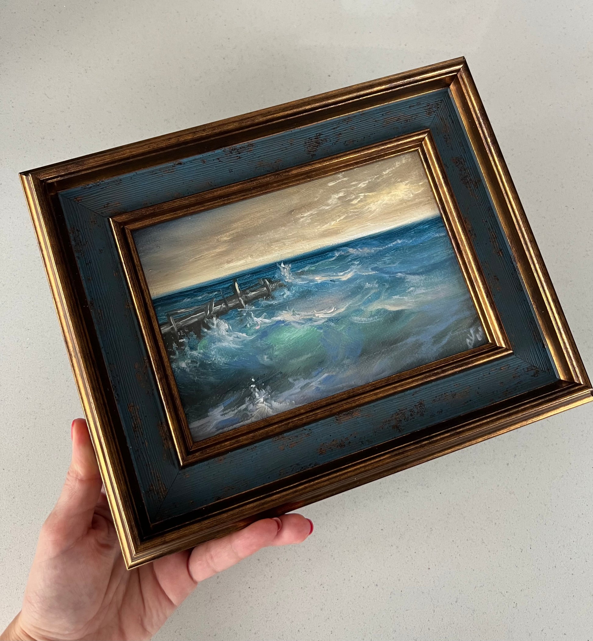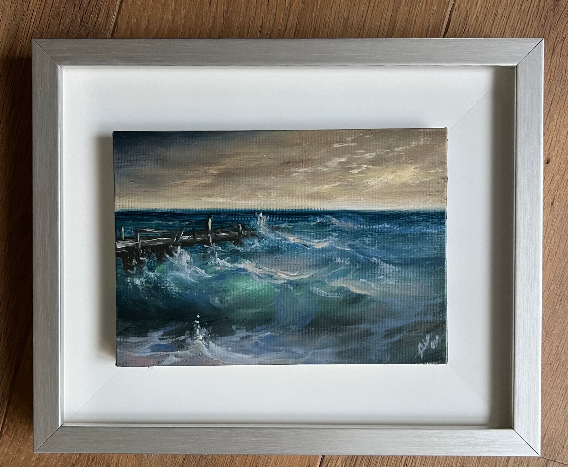 Breaking Dusk I, 13x18 cm, original seascape oil painting