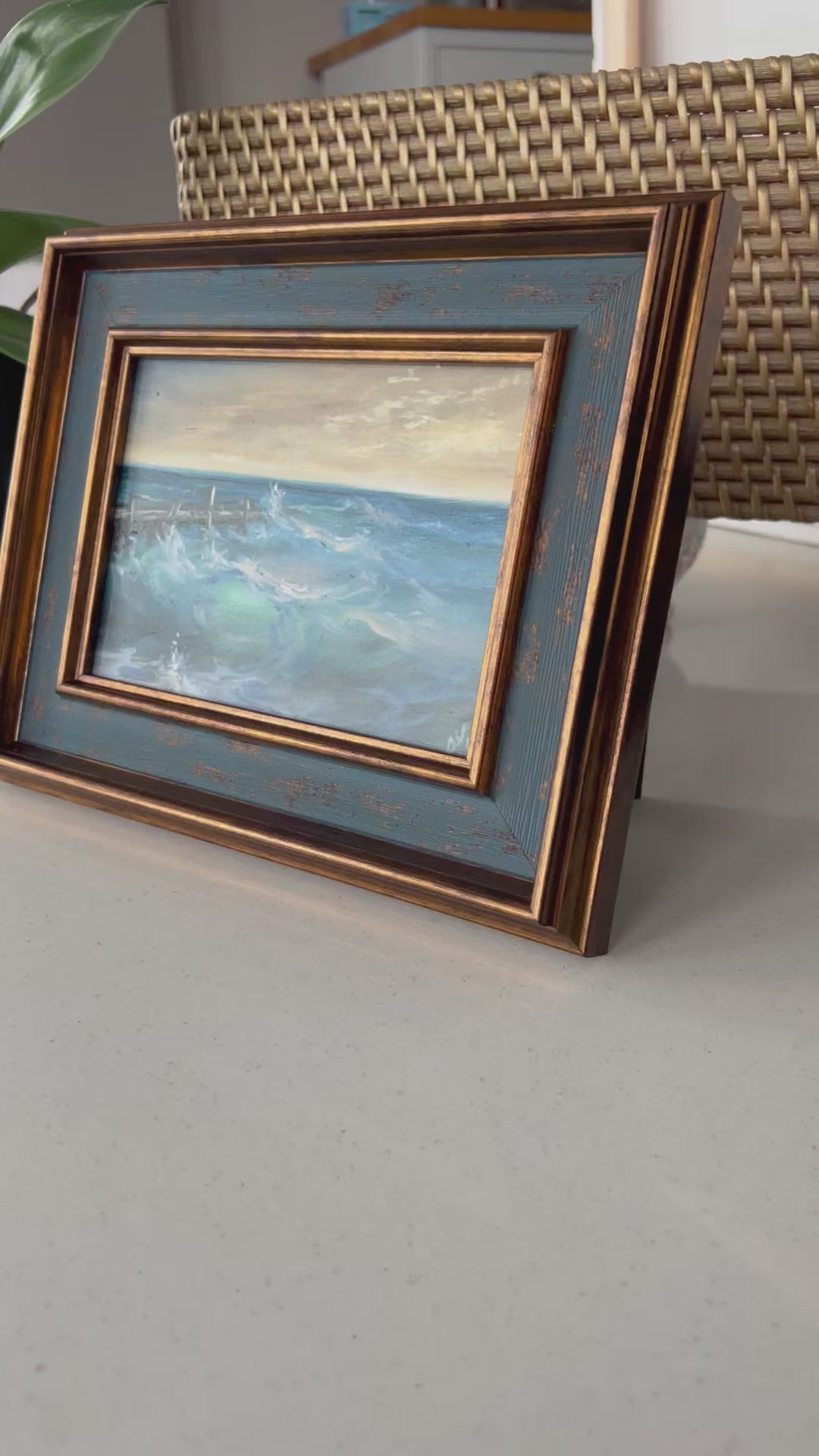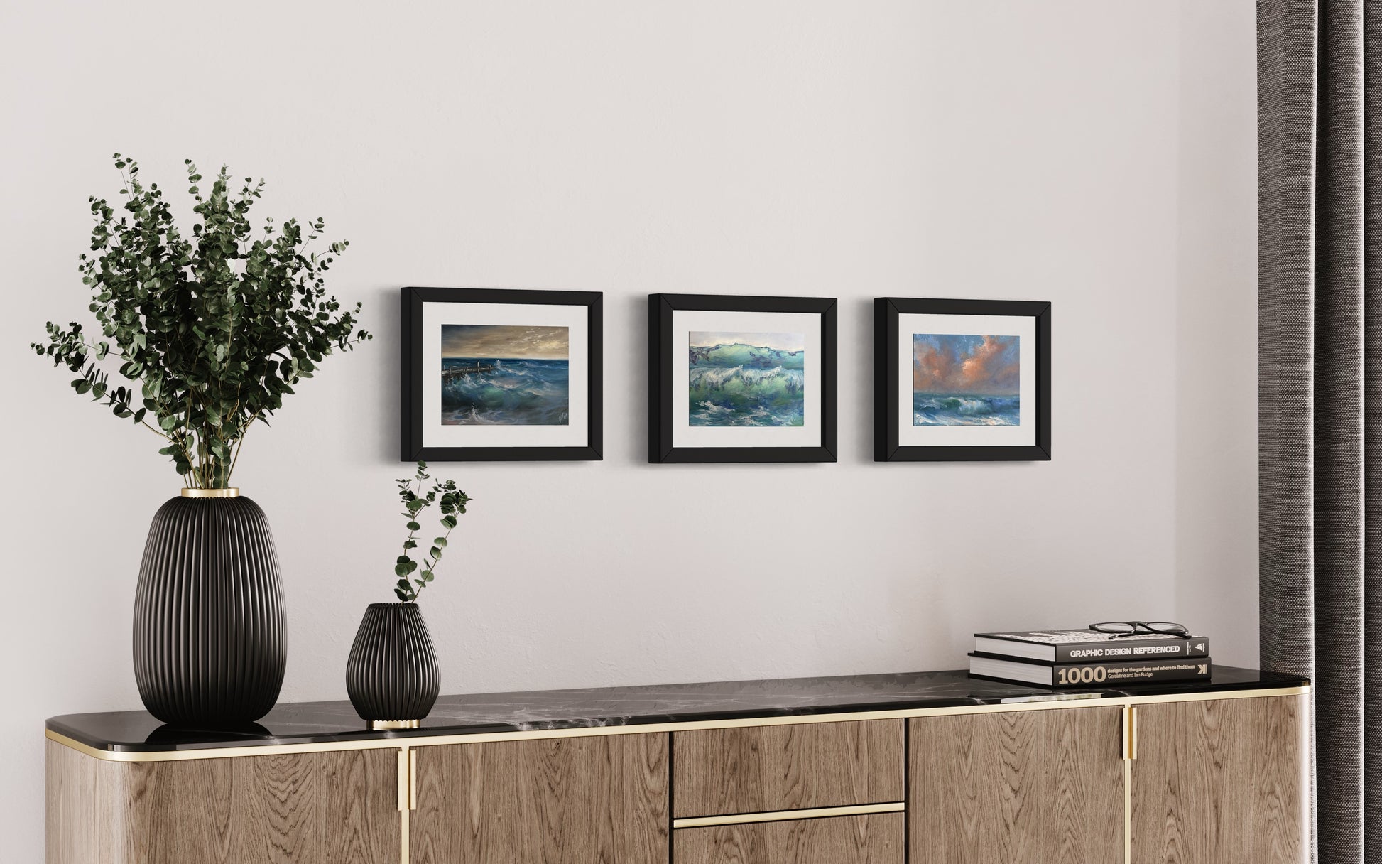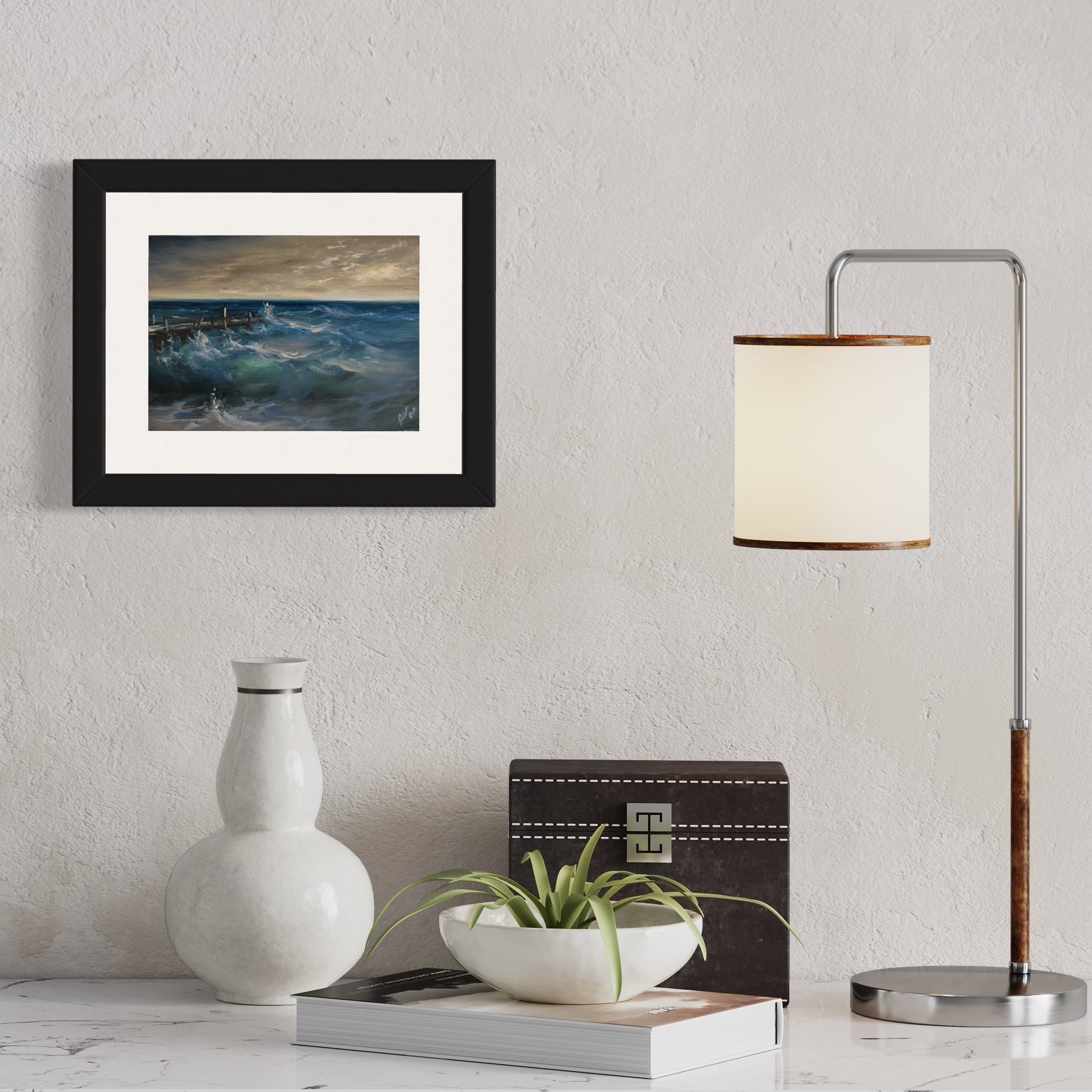 -Black wood: this original ocean painting is framed with high quality hand-made wooden frame and soft white mount , placed under low-reflective ClearView™ PlexiGlas (compare to normal glass), is signed and dated by me at the back.