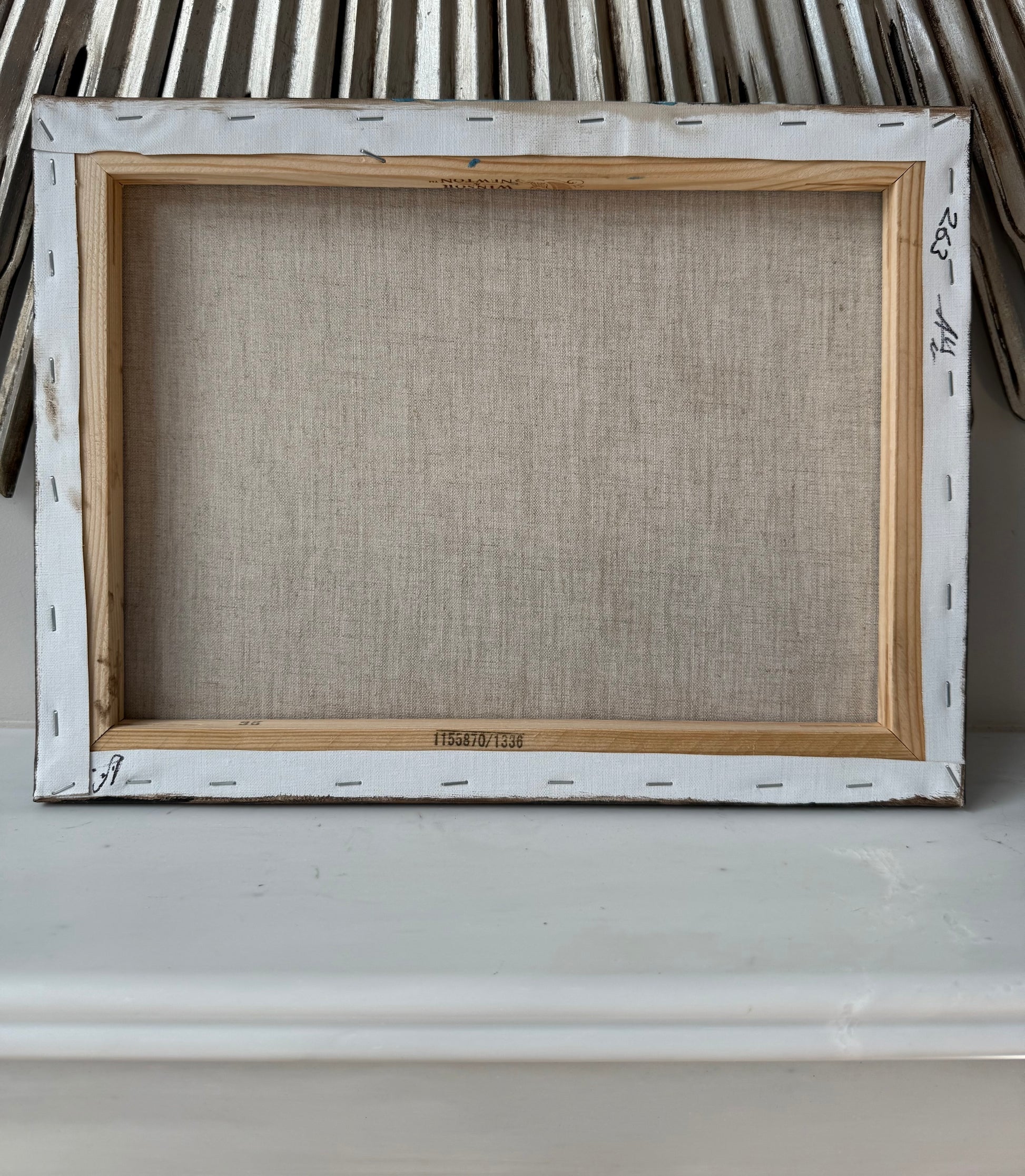 professional grade oil paints, brushes, palette knife, gallery wrapped 100% LINEN canvas, varnish.