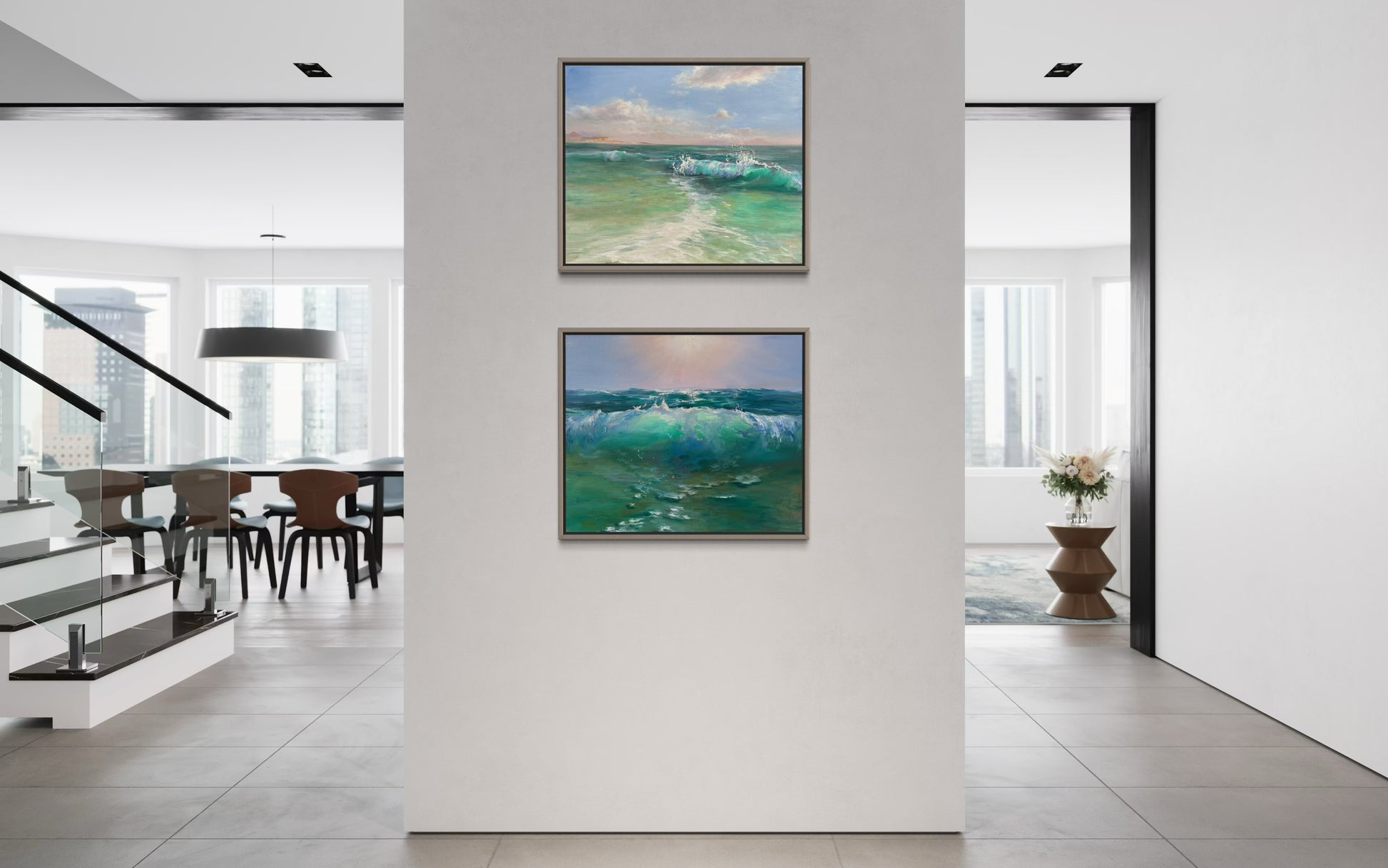 This painting would look great in any home décor style. It is ready to hang, can be framed or hung without a frame - this painting is extended over the edges of the gallery wrapped deep canvas, is wired, signed and dated by me.
