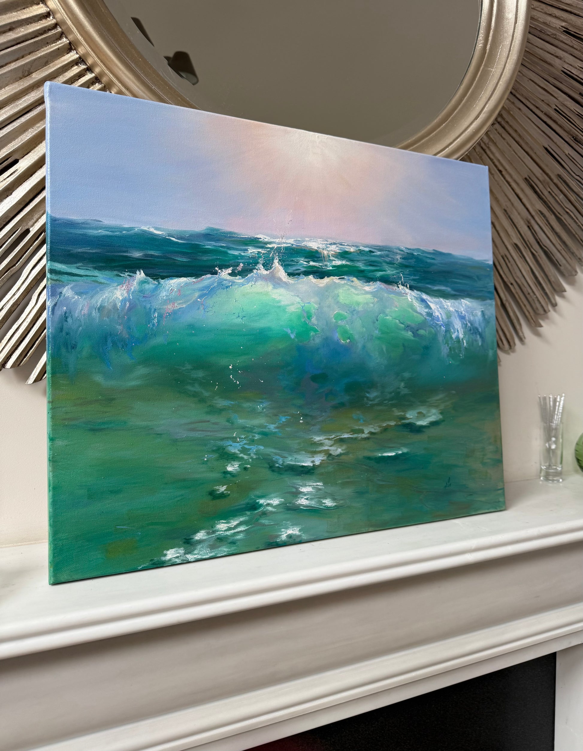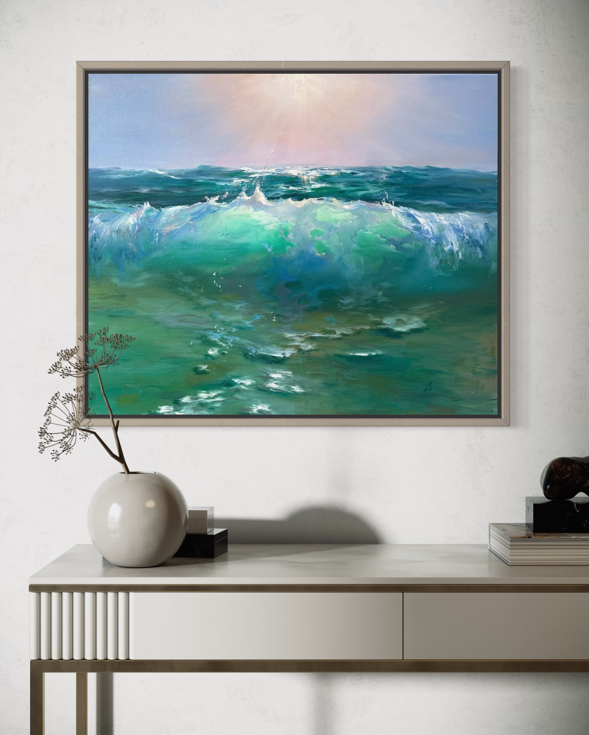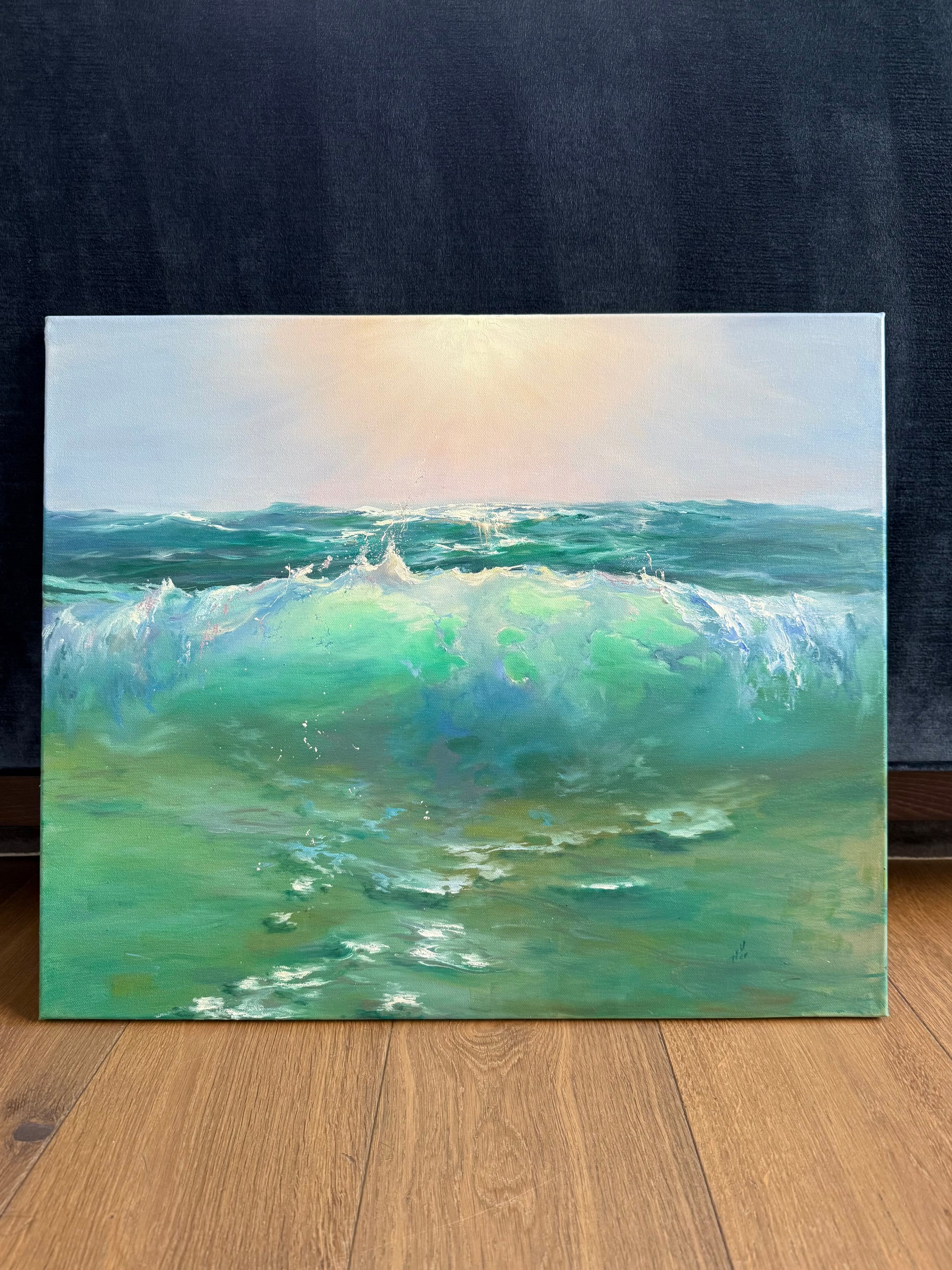 This artwork is inspired by the power and beauty of the stormy ocean, overwhelming might of its crushing waves, fascinating translucency of the seawater.