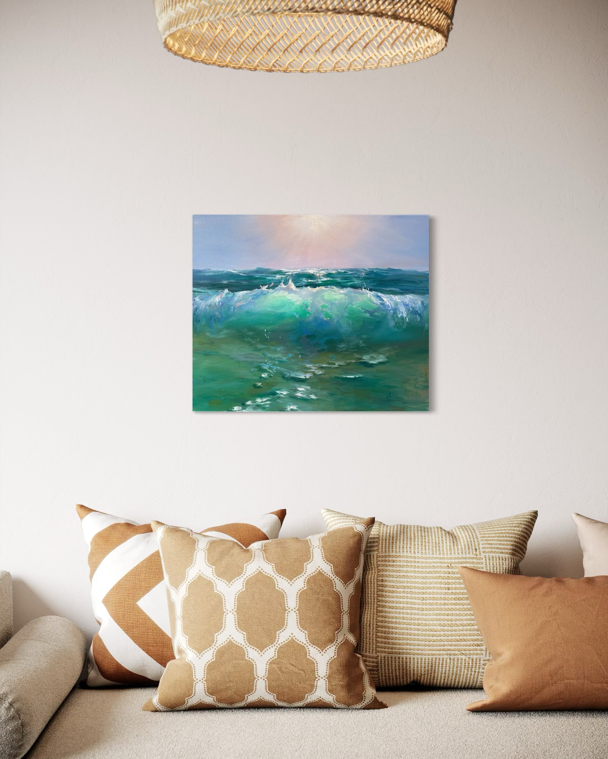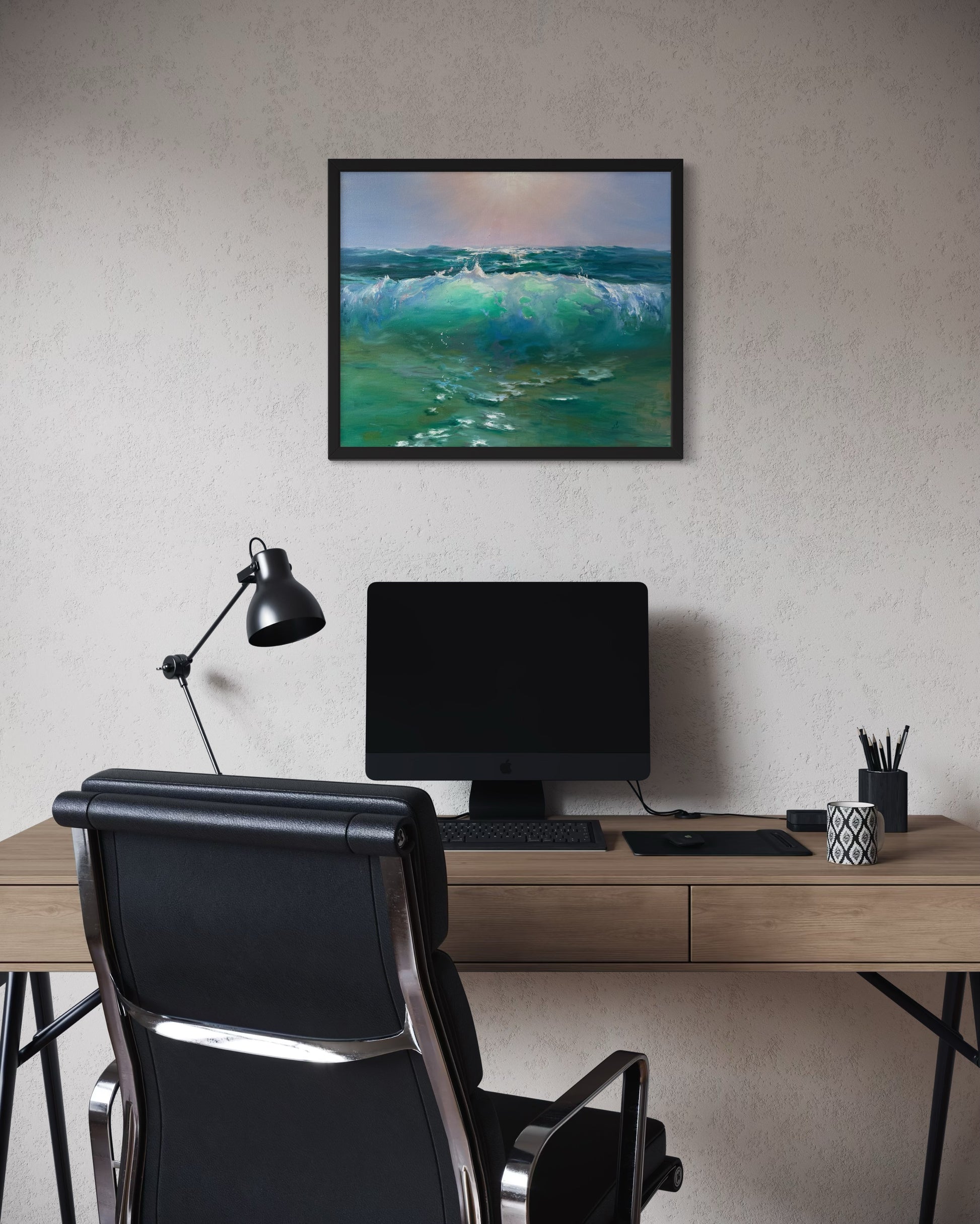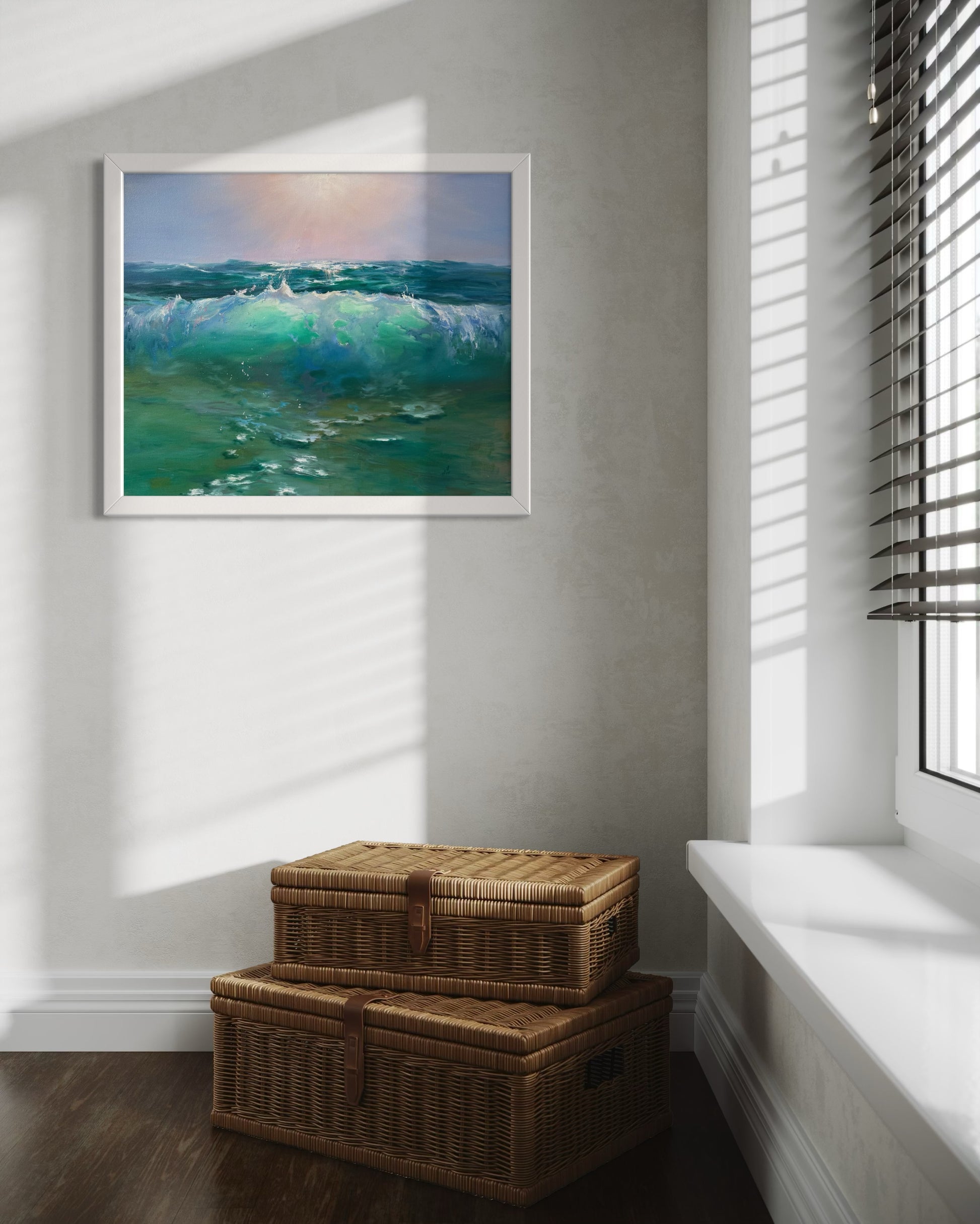 This artwork is inspired by the power and beauty of the stormy ocean, overwhelming might of its crushing waves, fascinating translucency of the seawater.