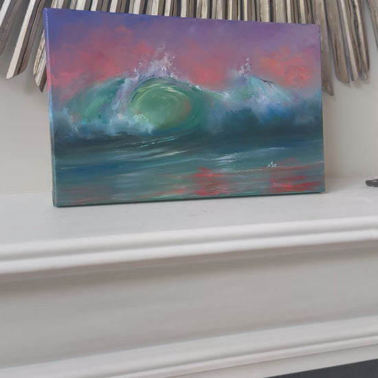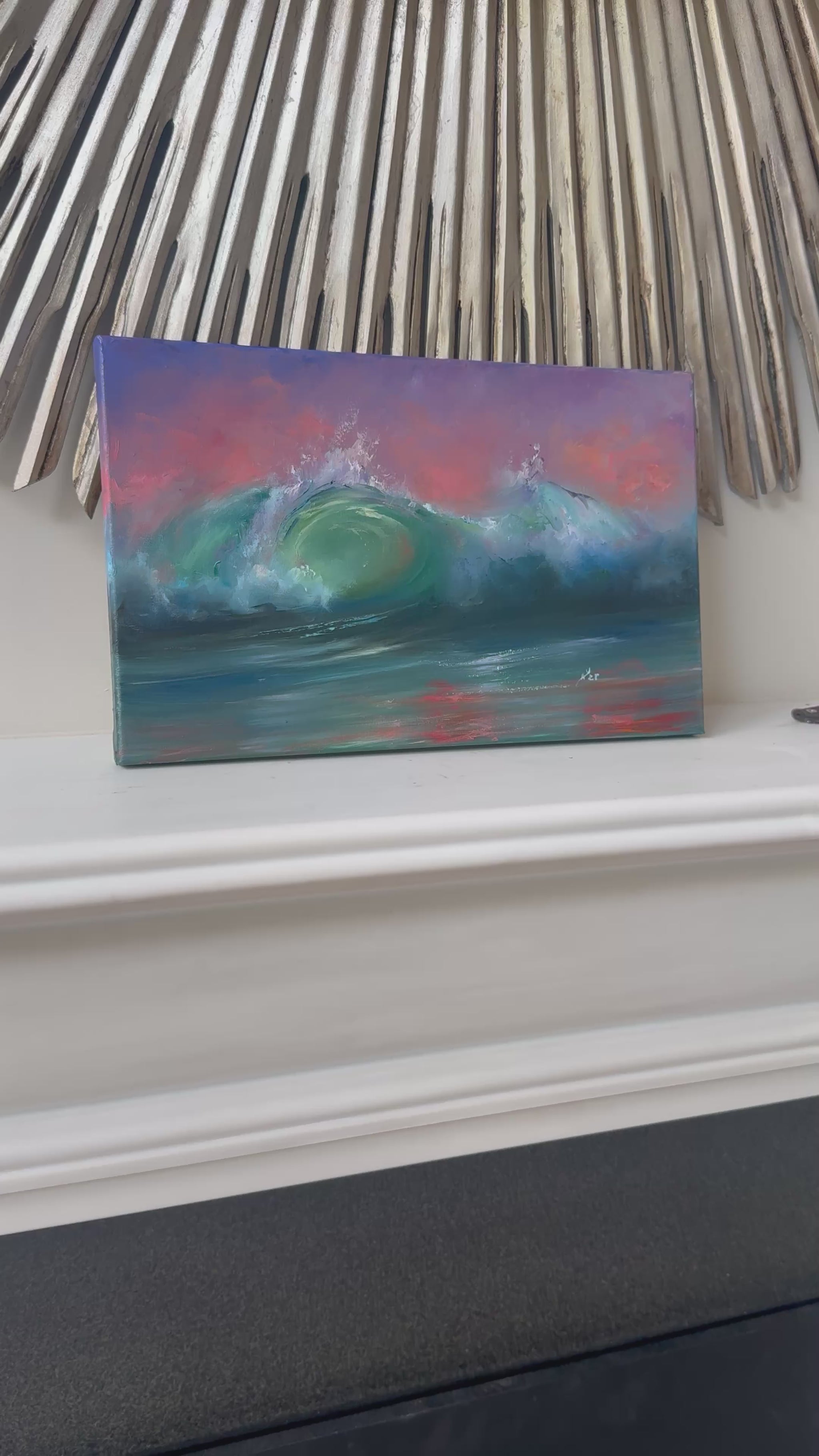 In this painting, I captured the raw, fleeting energy of a wave at sunset, blending impressionism's emotion with realism’s detail. The vibrant sky and crashing water evoke a sense of power and tranquility at once. I wanted to bring the ocean’s wild beauty into your space, filling it with the soothing yet exhilarating rhythm of nature’s evening dance.