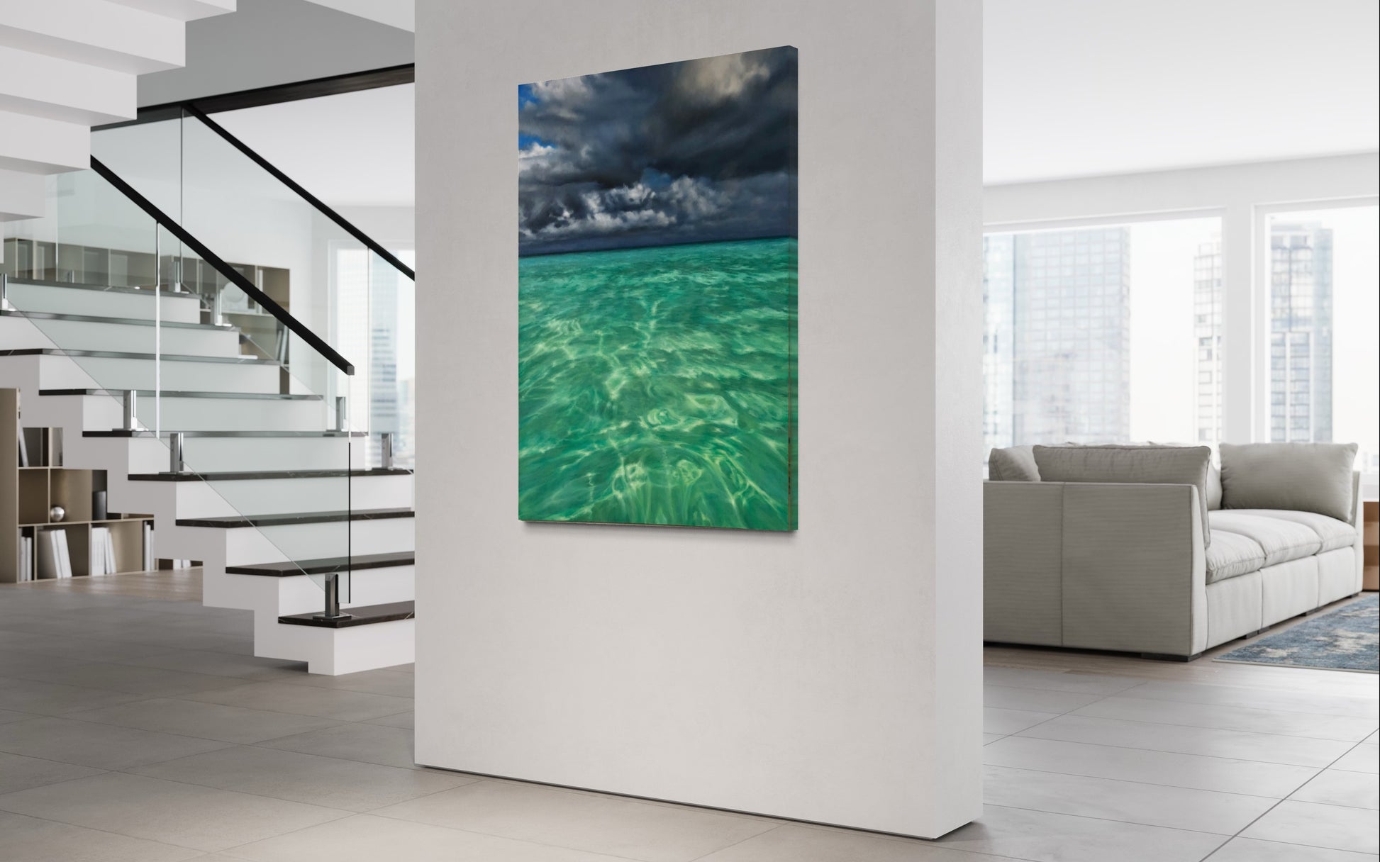 This painting would look great in any home décor style. It is ready to hang, can be framed or hung without a frame - this painting is extended over the edges of the gallery wrapped deep canvas, is wired, signed and dated by me.